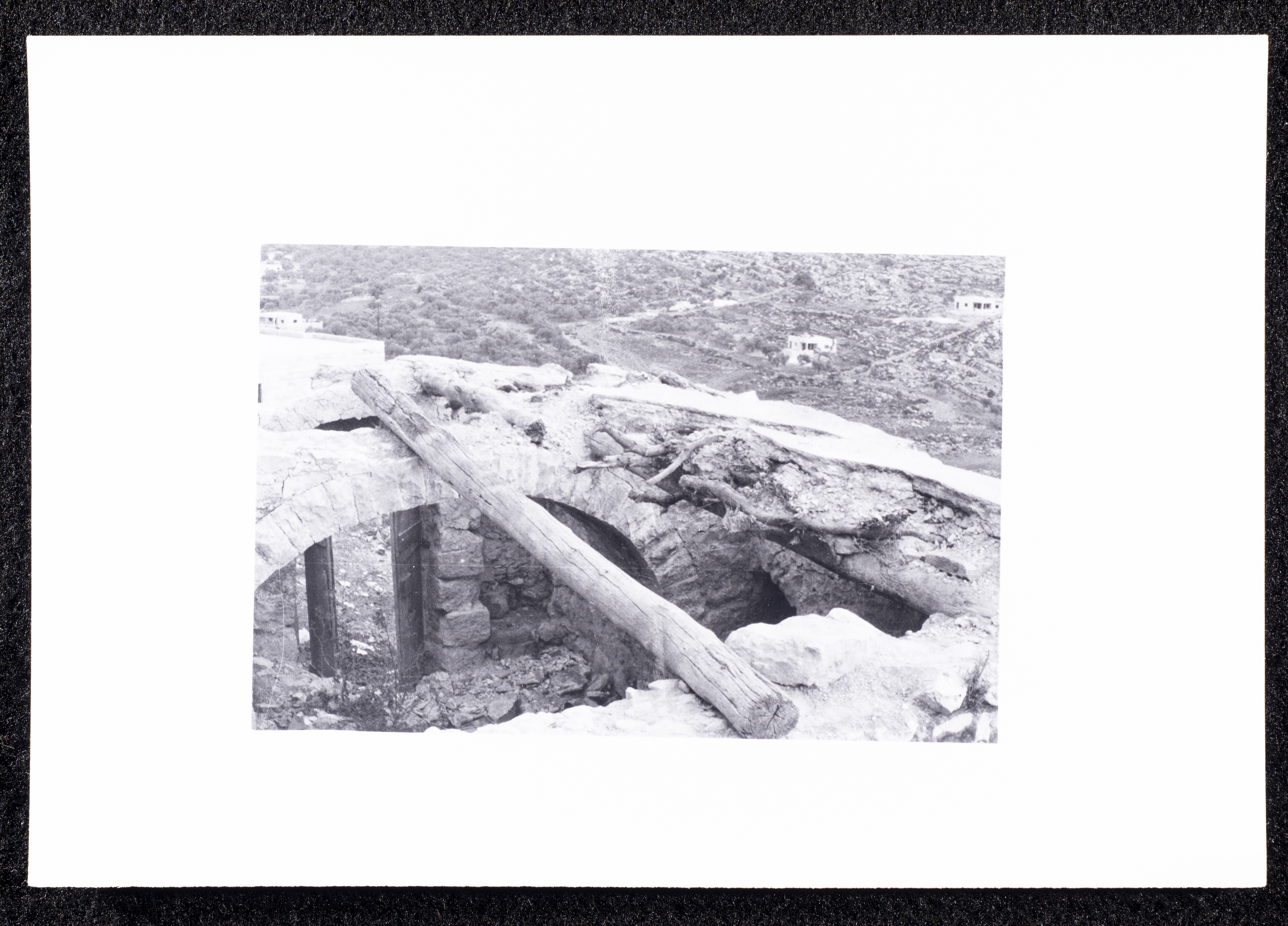 This black-and-white photograph captures a glimpse of the village of Dayr Ghassana.