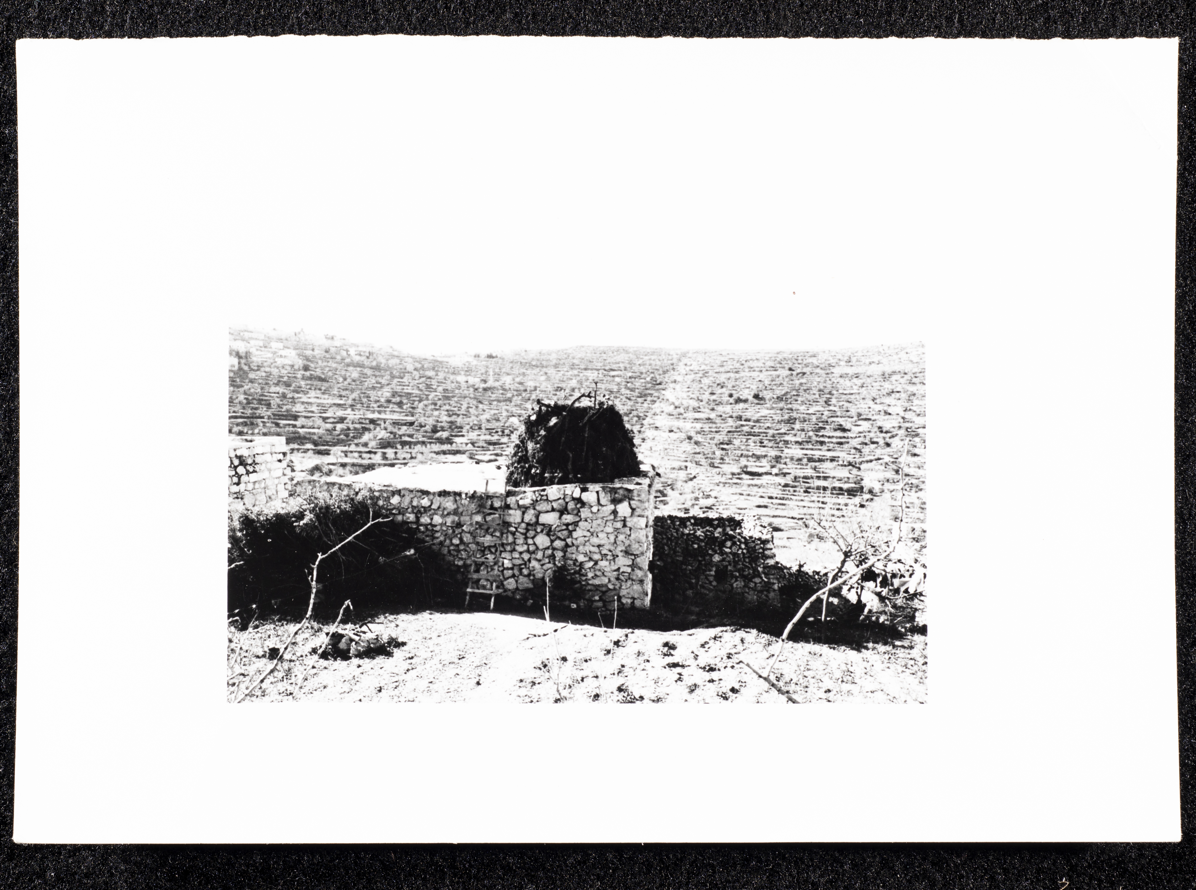 Found in Suʿad al-ʿamiri's Collection, this black-and-white photograph shows an old castle in Ramallah.