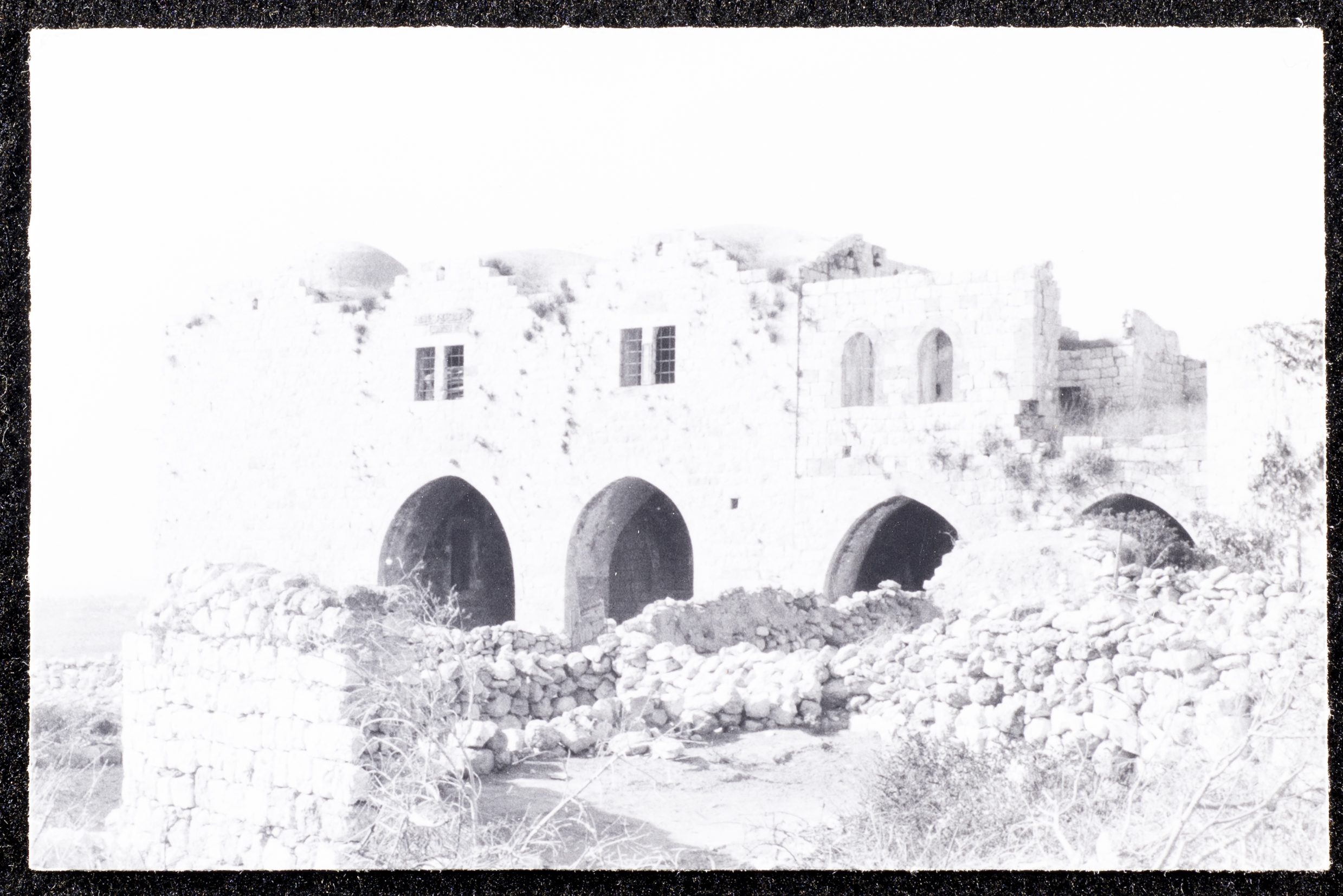 This black-and-white photograph captures a glimpse of the village of Dayr Ghassana.