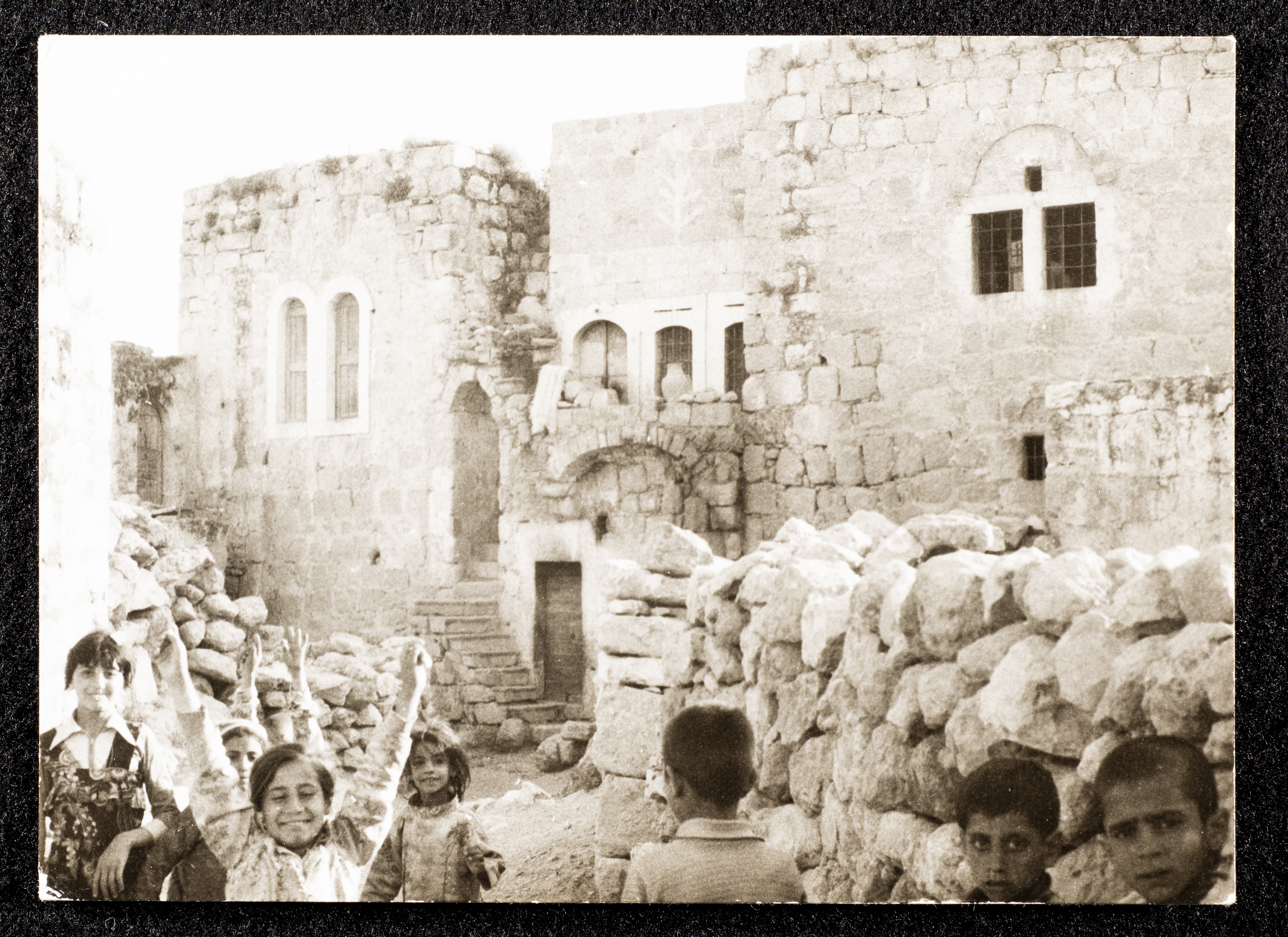 Taken in 1981, this black-and-white photograph shows an old house in Yatta.