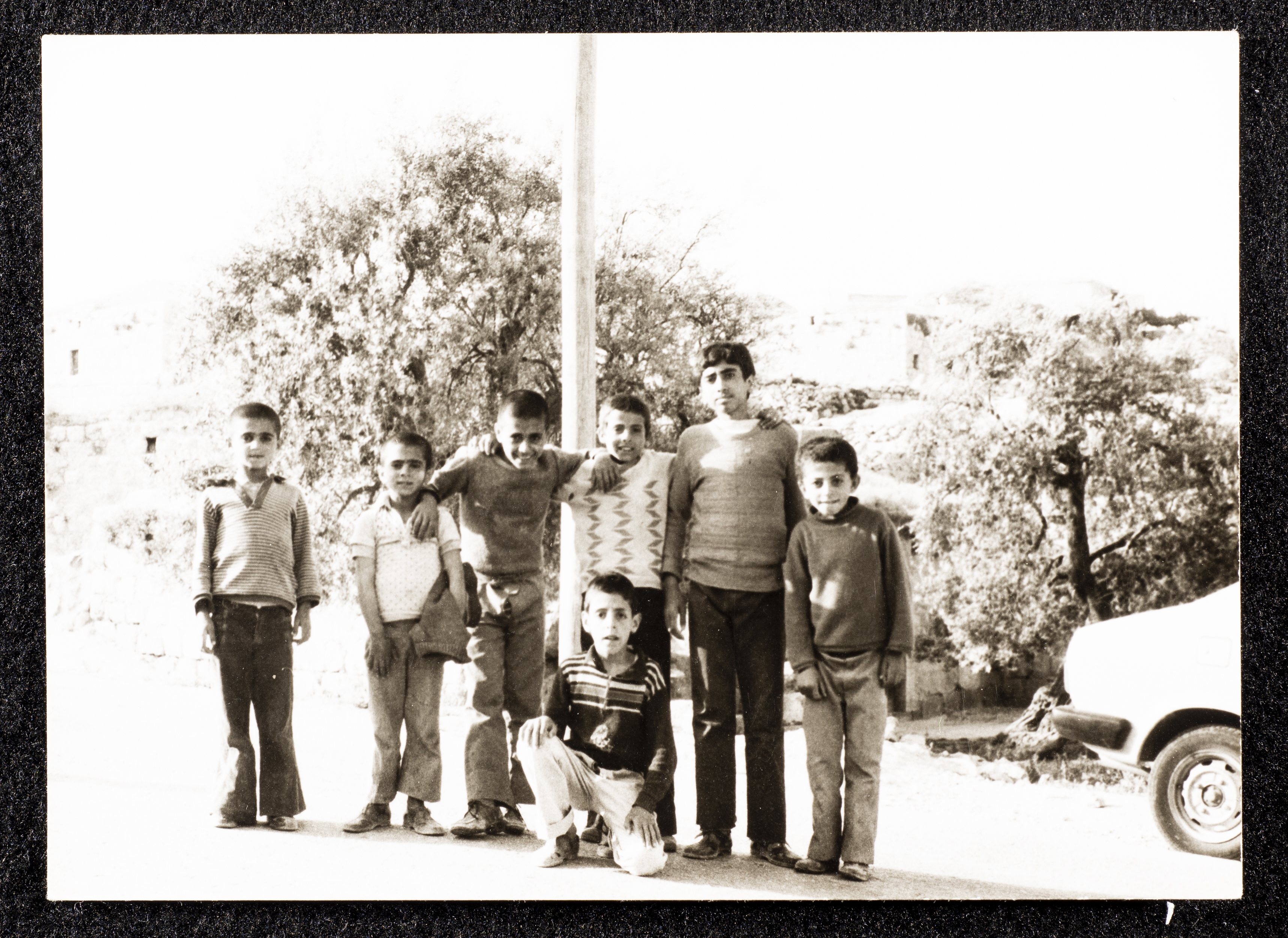 Taken in 1981, this black-and-white photograph shows children in Yatta, Hebron.