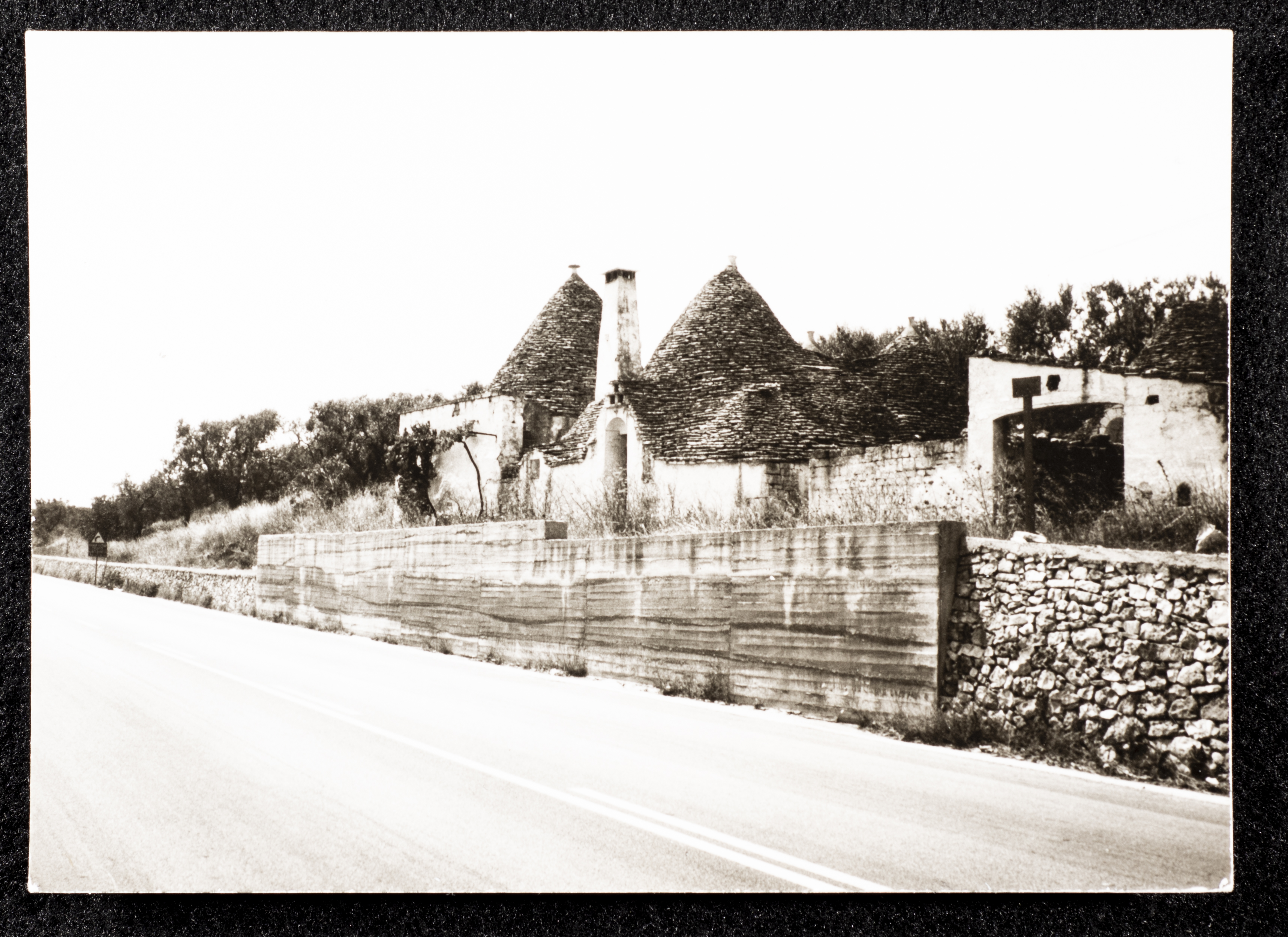 Taken in 1981, this black-and-white photograph shows old buildings (huts) in Italy.