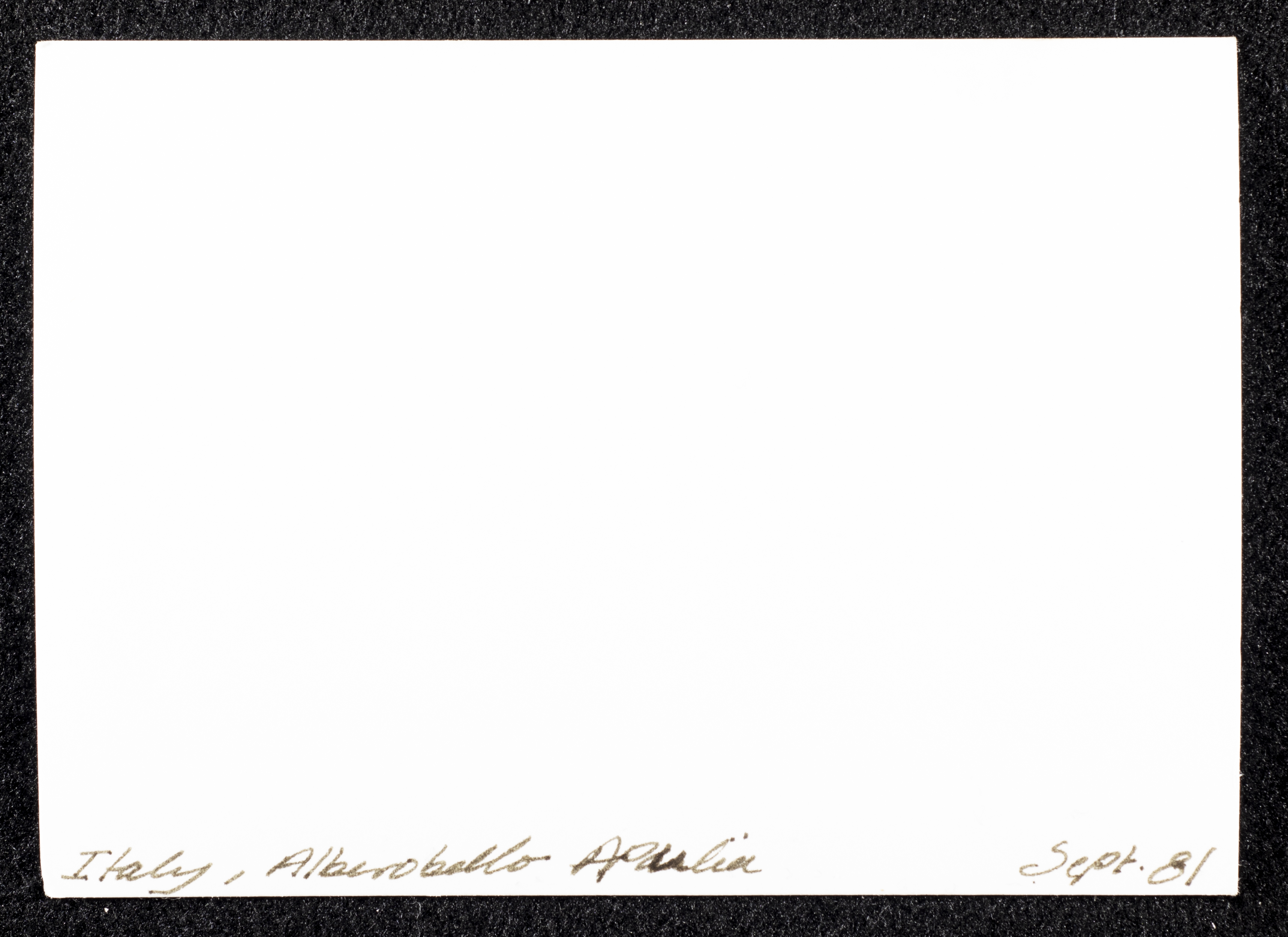 Taken in 1981, this black-and-white photograph shows hut in Italy.