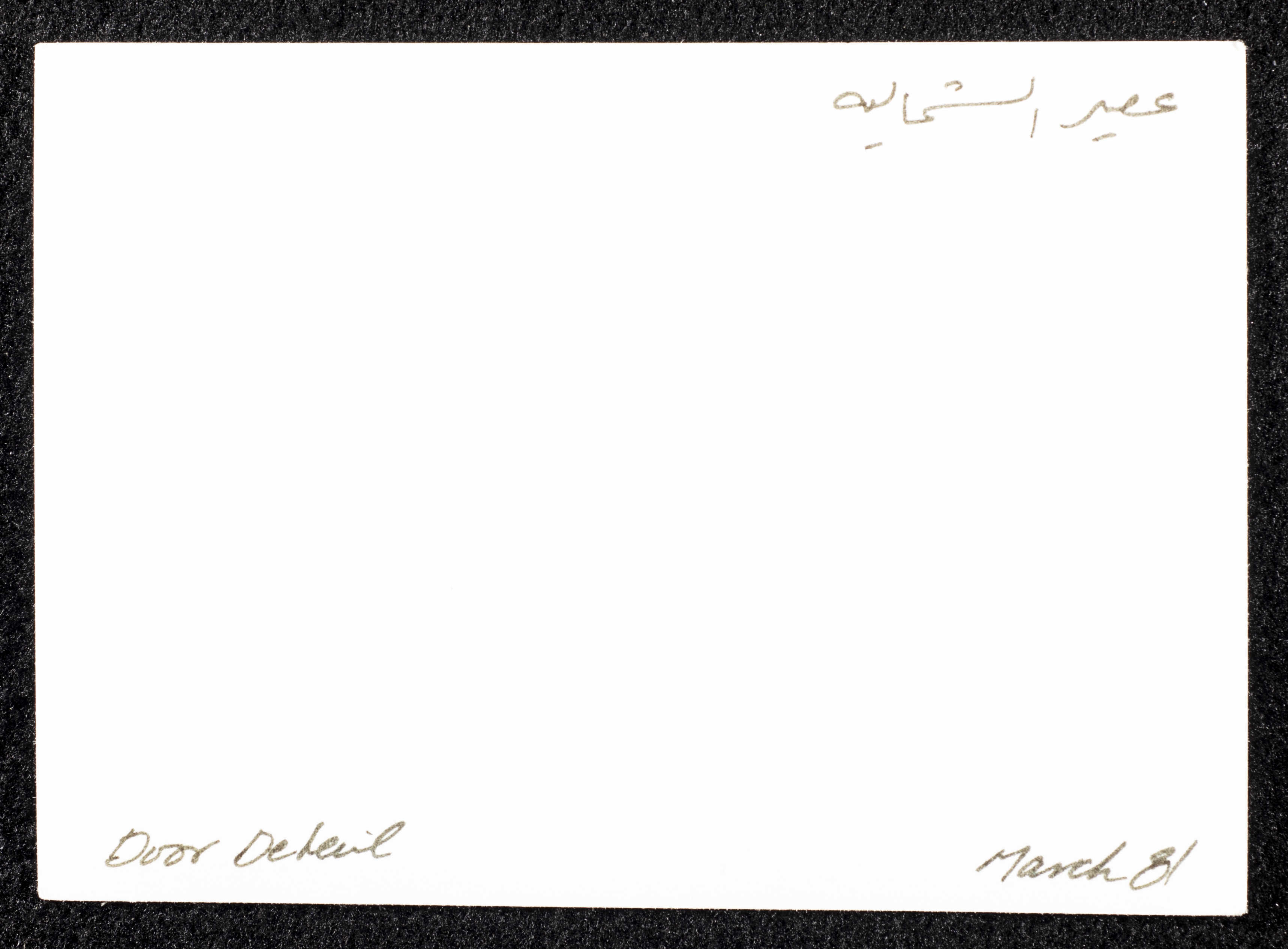Taken in 1981, this black-and-white photograph shows a glimpse of the architecture shown on the door of an old house in Asira ash-Shamaliya.