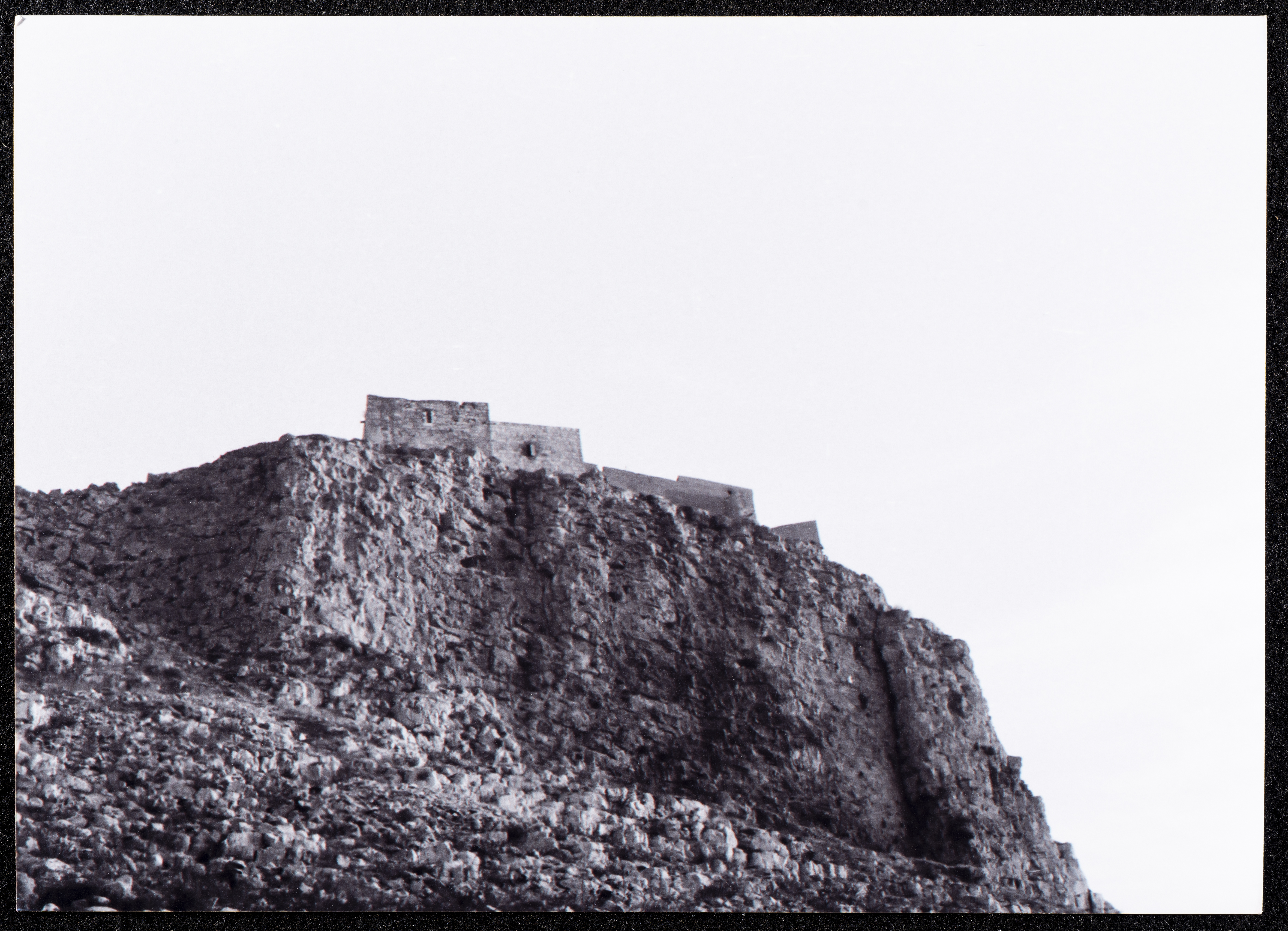 صورة غير ملونة ترصد جانبًا من قرية عراق بورين المحتلة جنوب غرب مدينة نابلس.