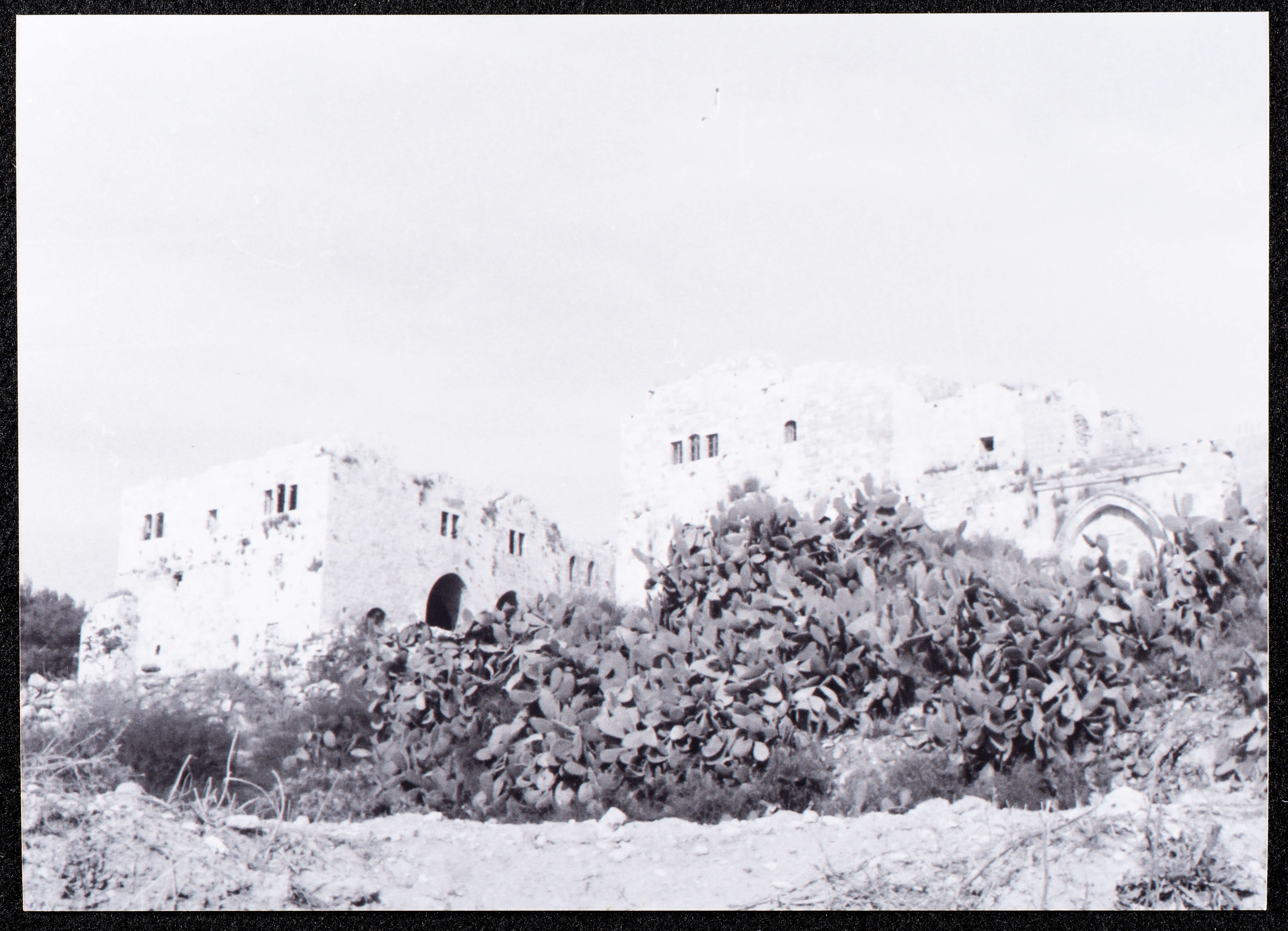 صورة توثق جانباً من قصر الشيخ يوسف واكد الجيوسي في قرية كور قضاء مدينة طولكرم المحتلة.