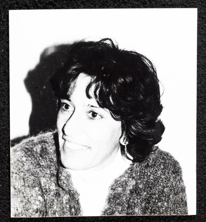 A black-and-white portrait of Zahira Kamal.