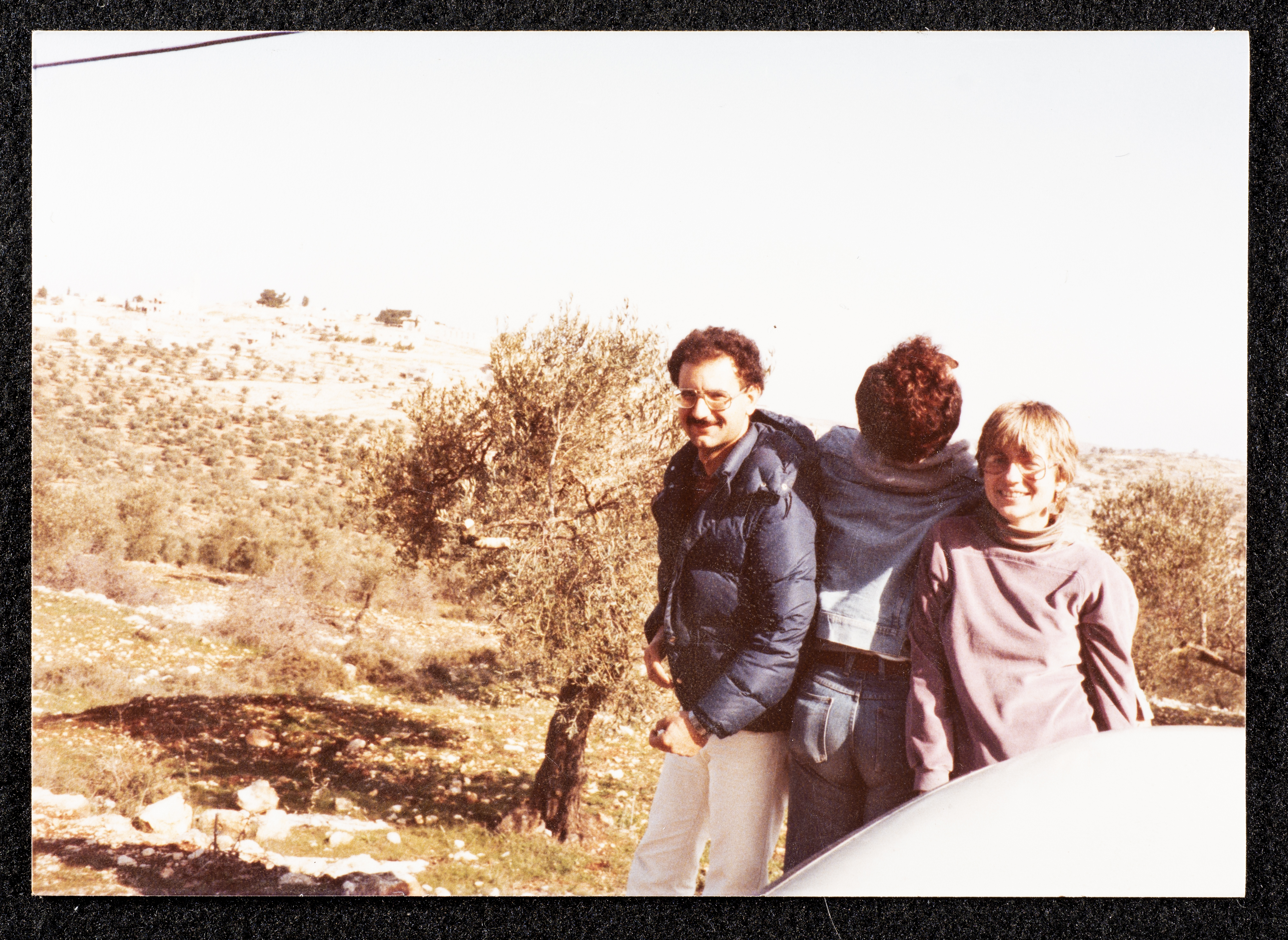 صورة ملونة من أرشيف سعاد العامرتظهر فيها سعاد العامري وصديقها رجا شحادة وزوجته الكاتبة بيني جونسون.