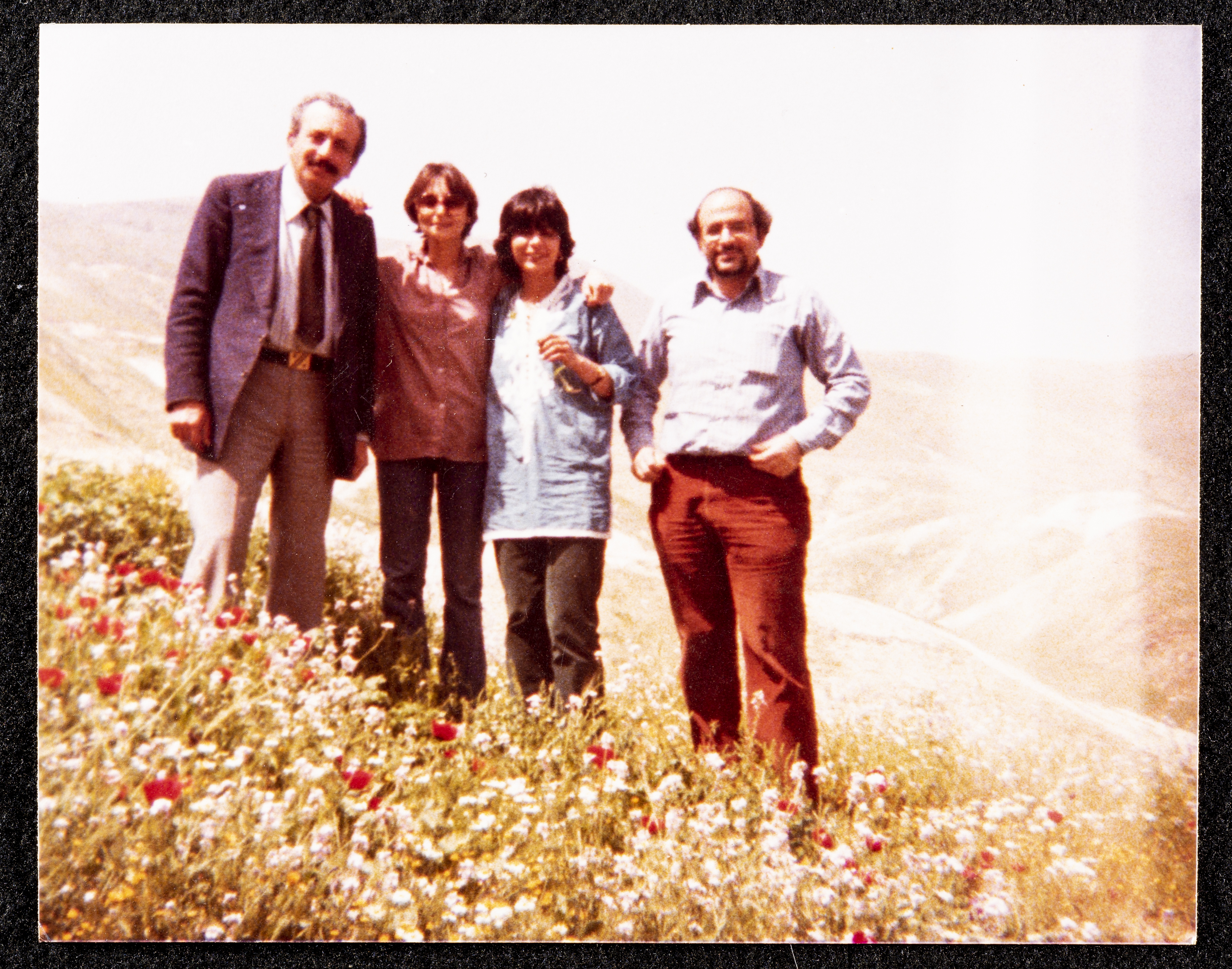 صورة ملونة من تصوير سعاد العامري لِأصدقائها، يظهر فيها كل من ليزا تركي وريتا جقمان، والسيد منير فاشة.