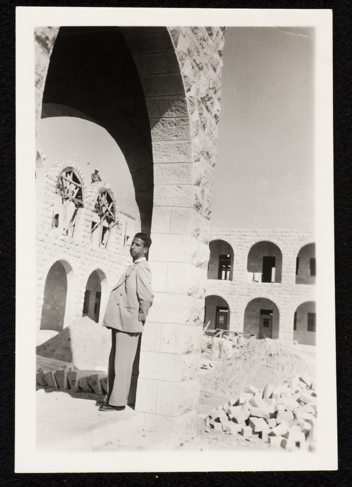 "A Photo of a Man Standing on the Premises of Ramallah Secondary Boy's School While under Construction"