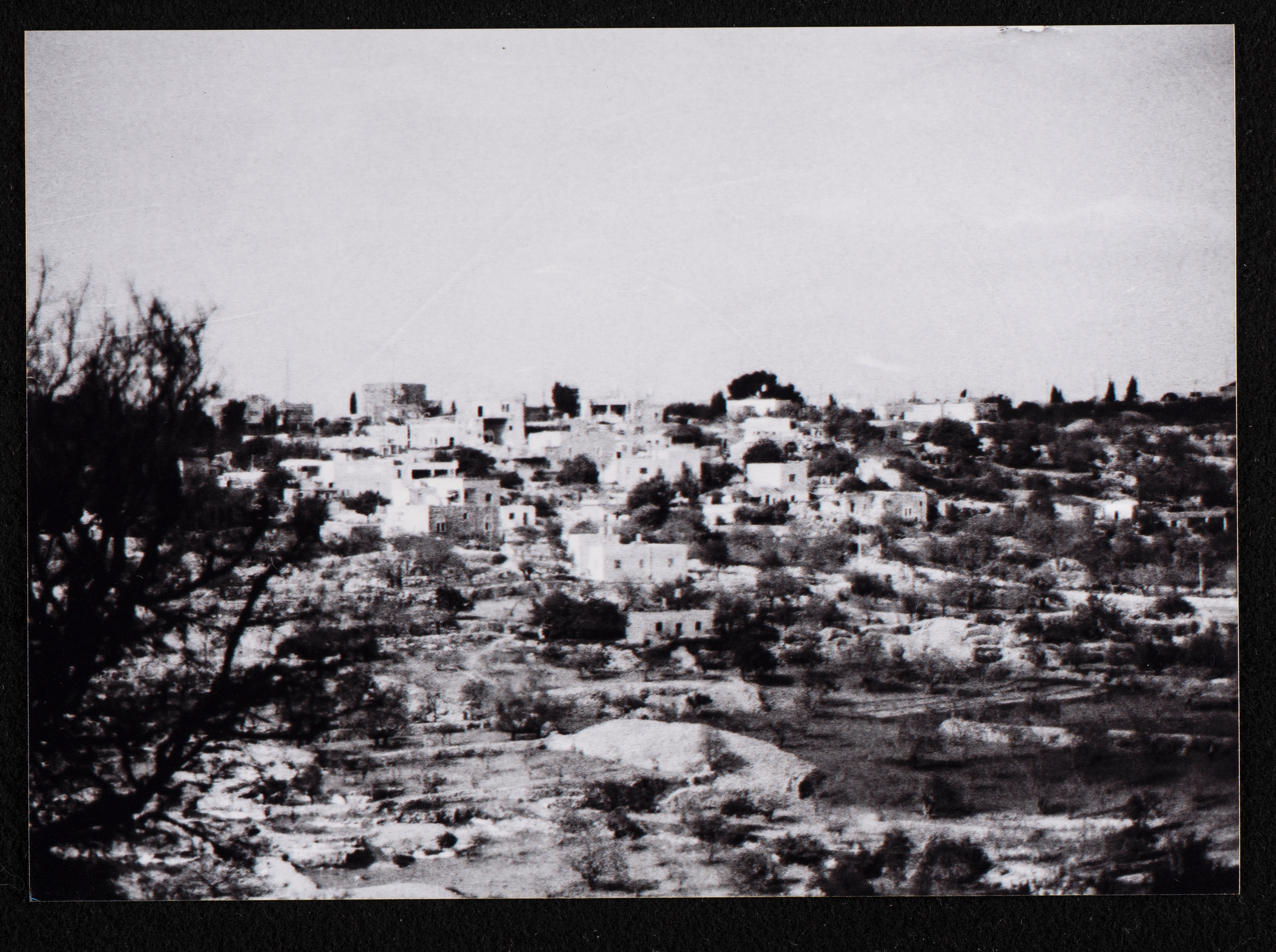 صورة غير ملونة، توثق جانبا من بيت قديم في قرية المزرعة الشرقية قضاء رام الله.