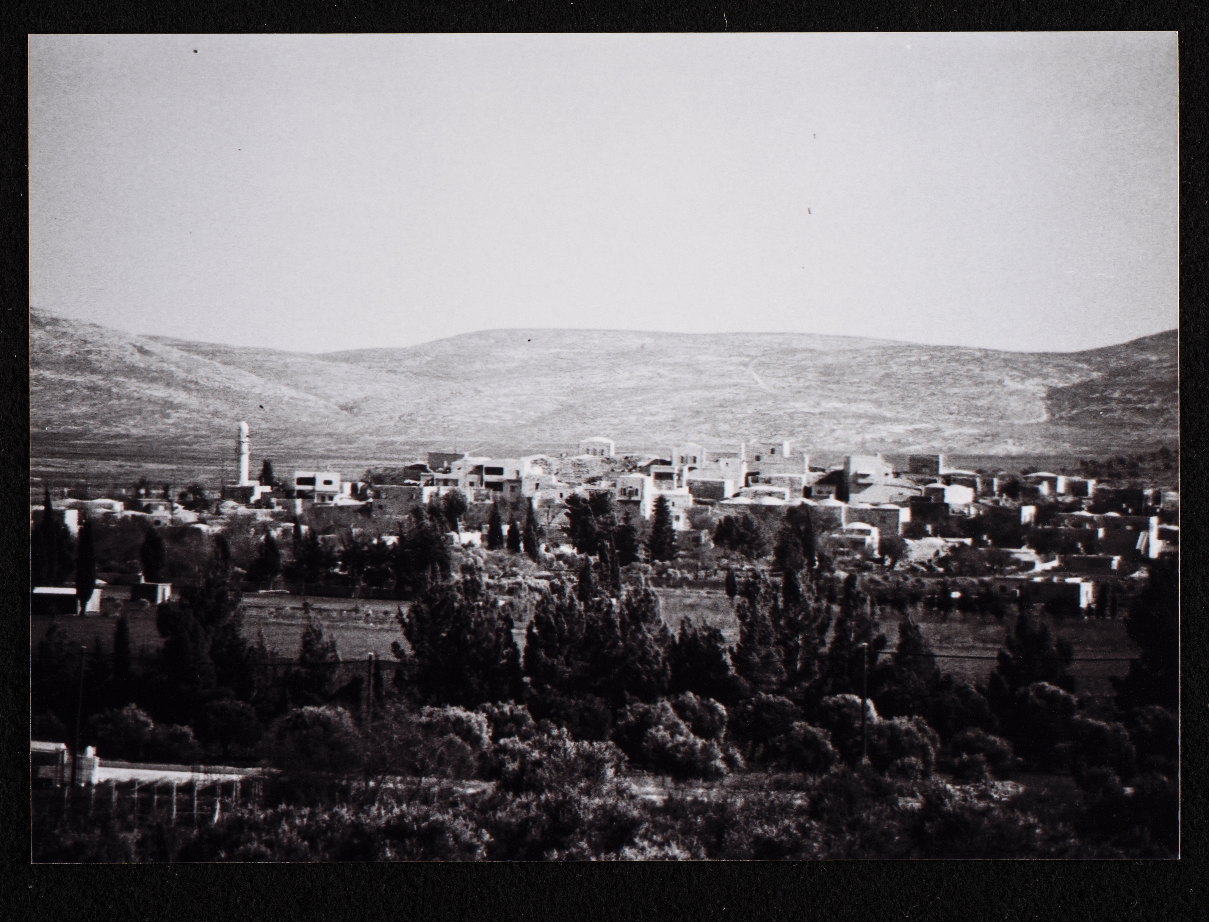صورة غير ملونة، لِـ مشهد عام لقرية ترمسعيا قضاء مدينة رام الله المحتلة.