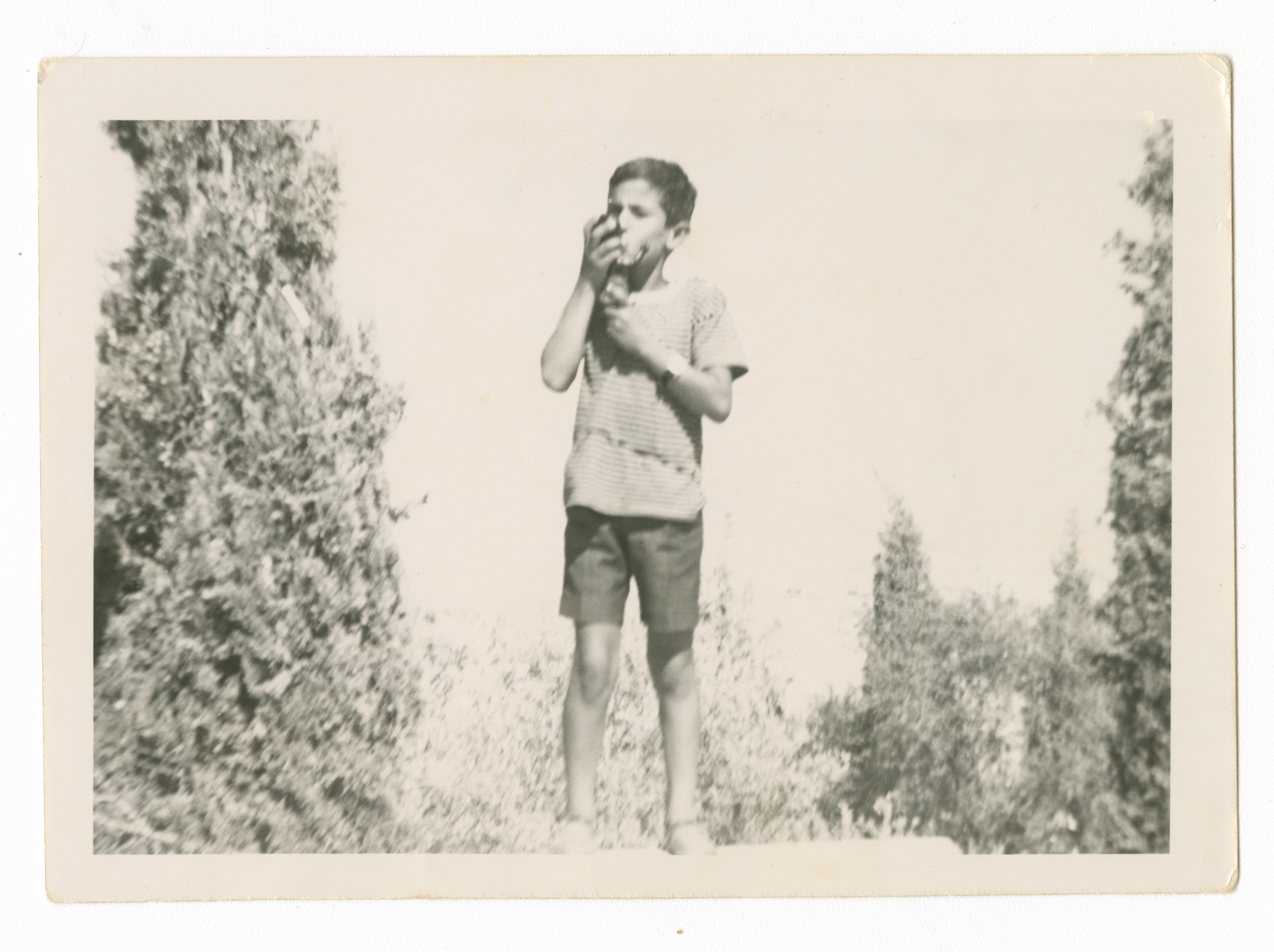 Taken in al-Eizariya, this black-and-white photograph captures Hasan al-Khatib as a kid.
