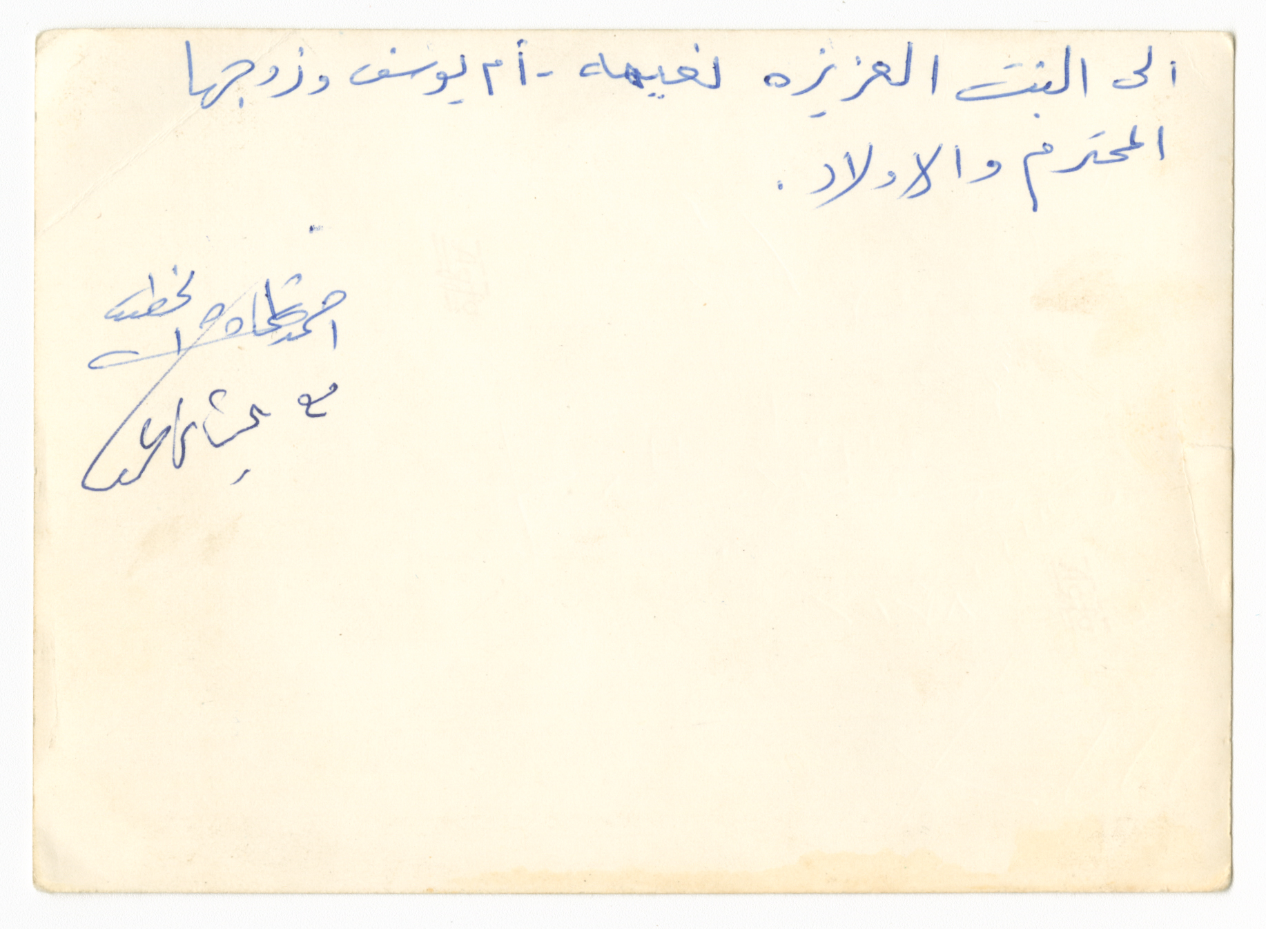 صورة غير ملونة يظهر فيها والد ووالدة نعيمة الخطيب برفقة شاب آخر، وقد أرسلت الصورة إلى نعيمة كتذكار خلال اقامتها في الكويت.
