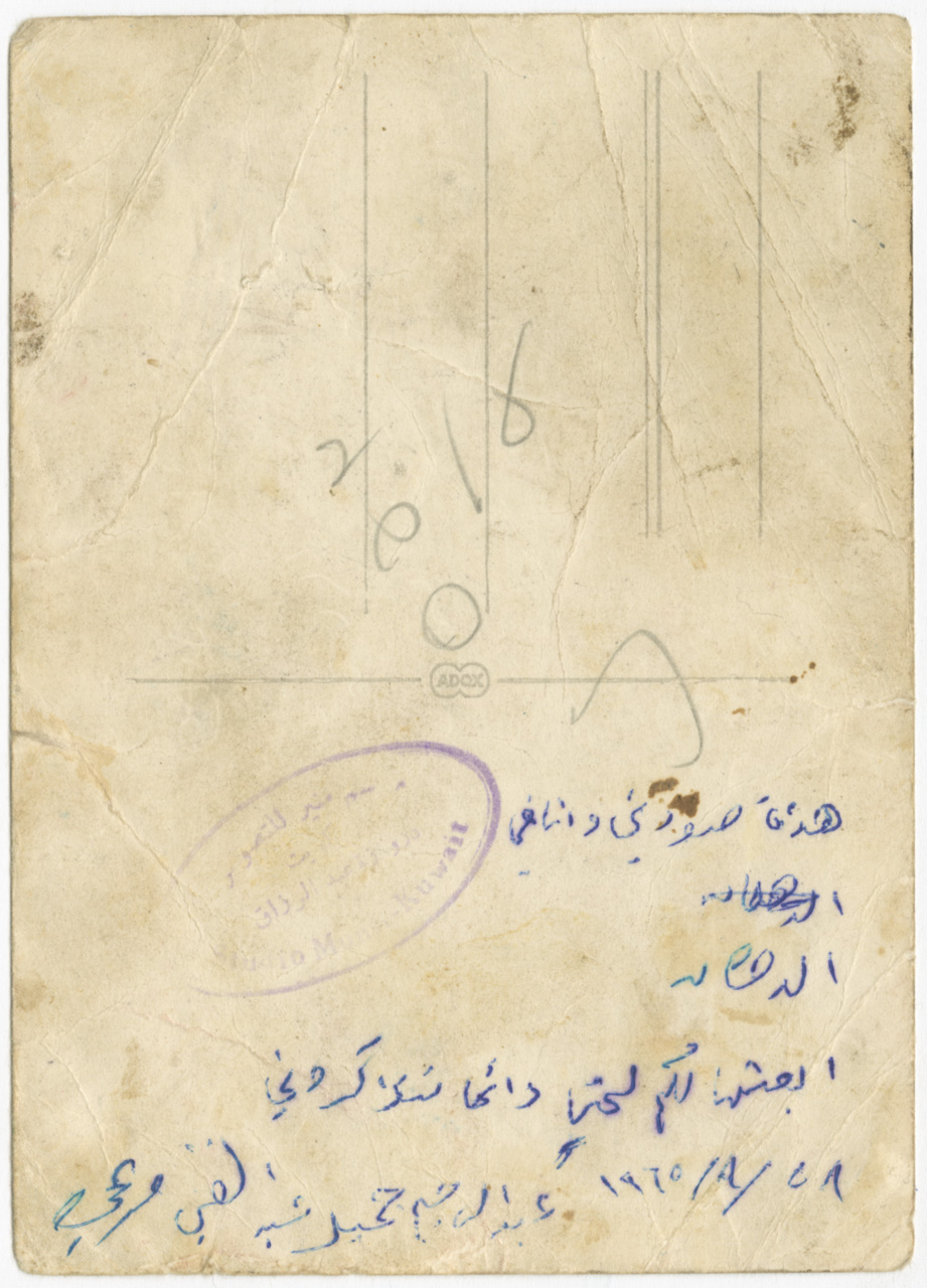 A portrait of shaheed ʿabdel-Rahim Jamil Marʿi back when he worked in Kuwait. This photo was sent to his family in Silwad.