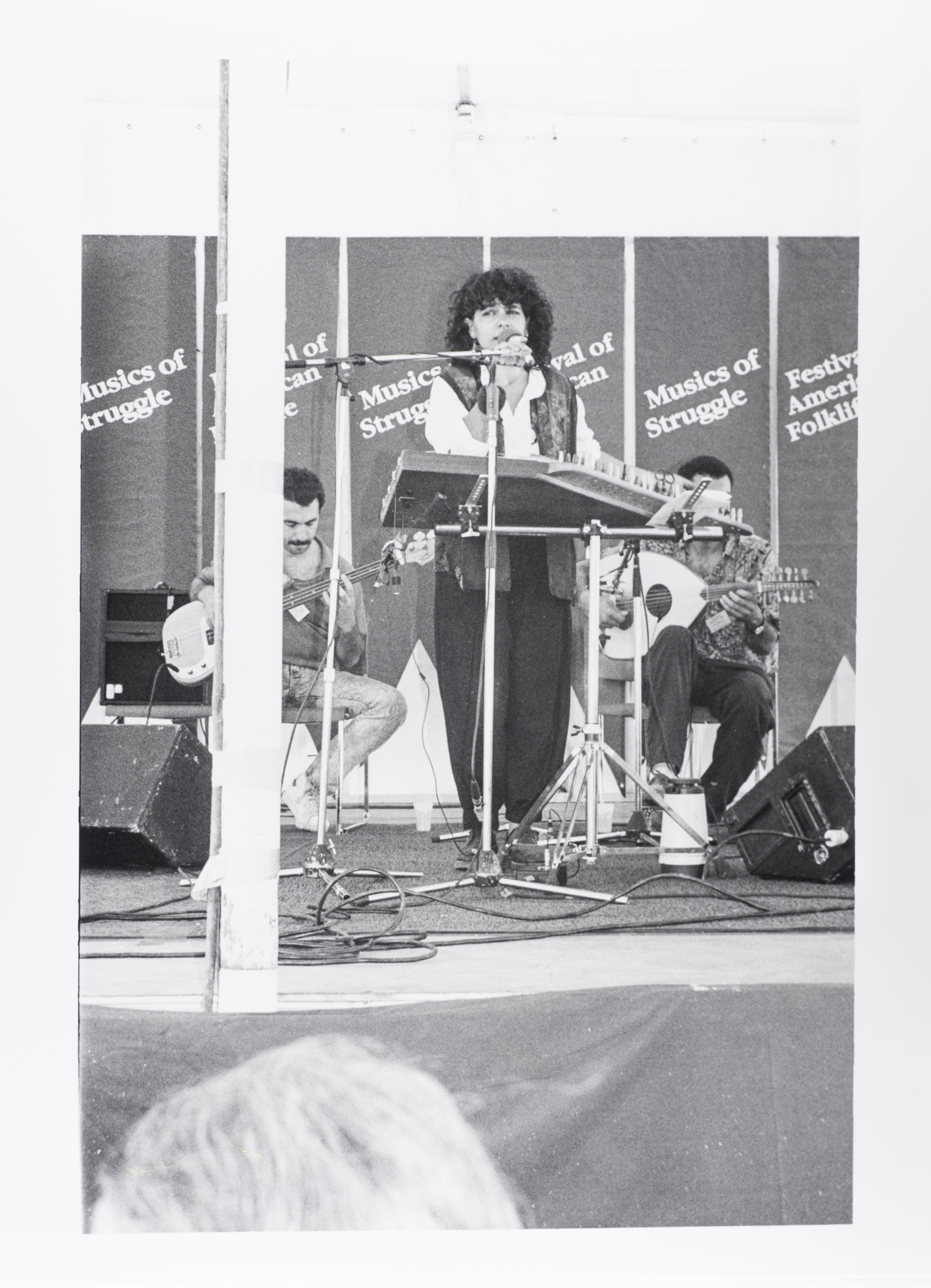 صورة ملونة من مشاركة فرقة صابرين في مهرجان "سميثسونيان" في واشنطن عام 1990، تظهر في الصورة كاميليا جبران.