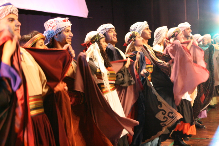 Taken in 2009, this colour photograph captures a glimpse of el-Funoun Palestinian Popular Dance Troupe's "Images Remembered" show.