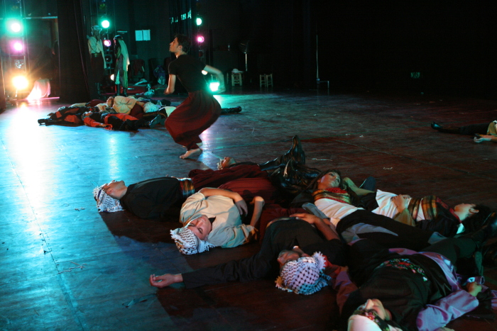 Taken in 2009, this colour photograph captures a glimpse of el-Funoun Palestinian Popular Dance Troupe's "Images Remembered" show.