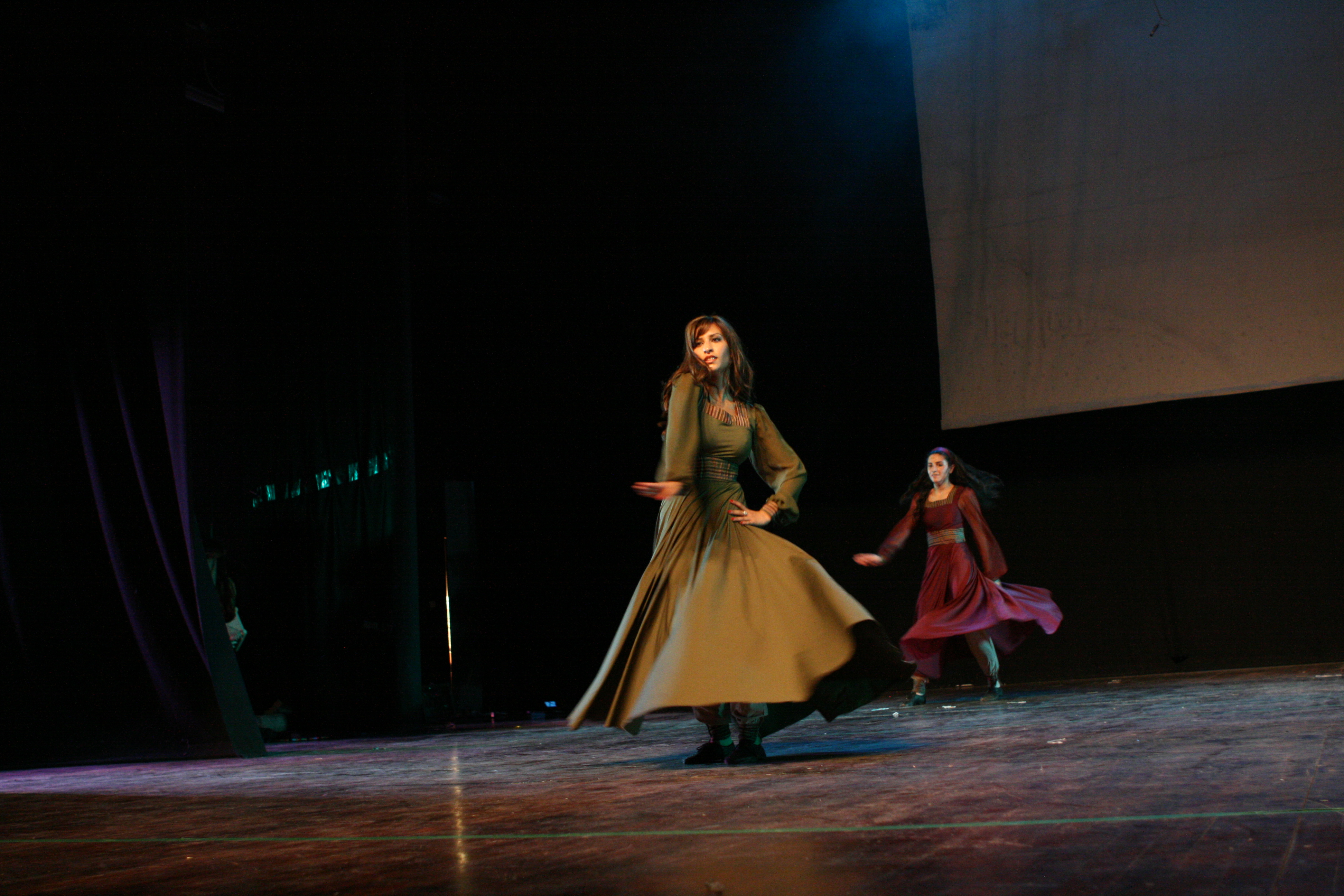 Taken in 2009, this colour photograph captures a glimpse of el-Funoun Palestinian Popular Dance Troupe's "Images Remembered" show.