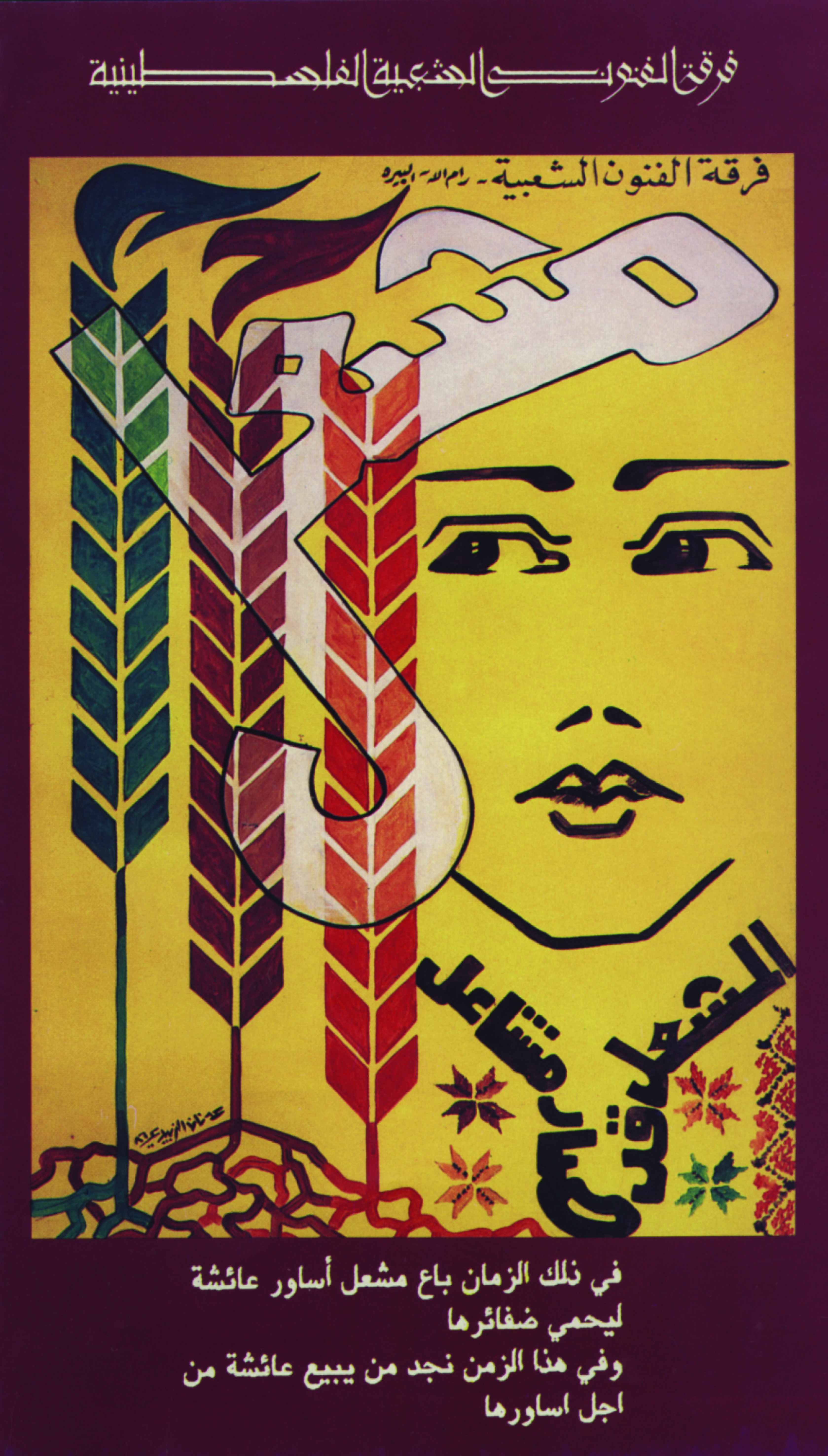 ملصق ملون، بعنوان "مشعل" من انتاج فرقة الفنون الشعبية الفلسطينية.