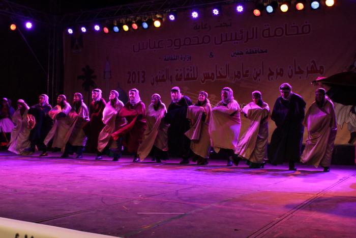 Taken in 2013, this colour photograph captures a glimpse of el-Funoun Palestinian Popular Dance Troupe's dance show, "Marj Ibn 'Amer" [the plains of Ibn 'Amer].
