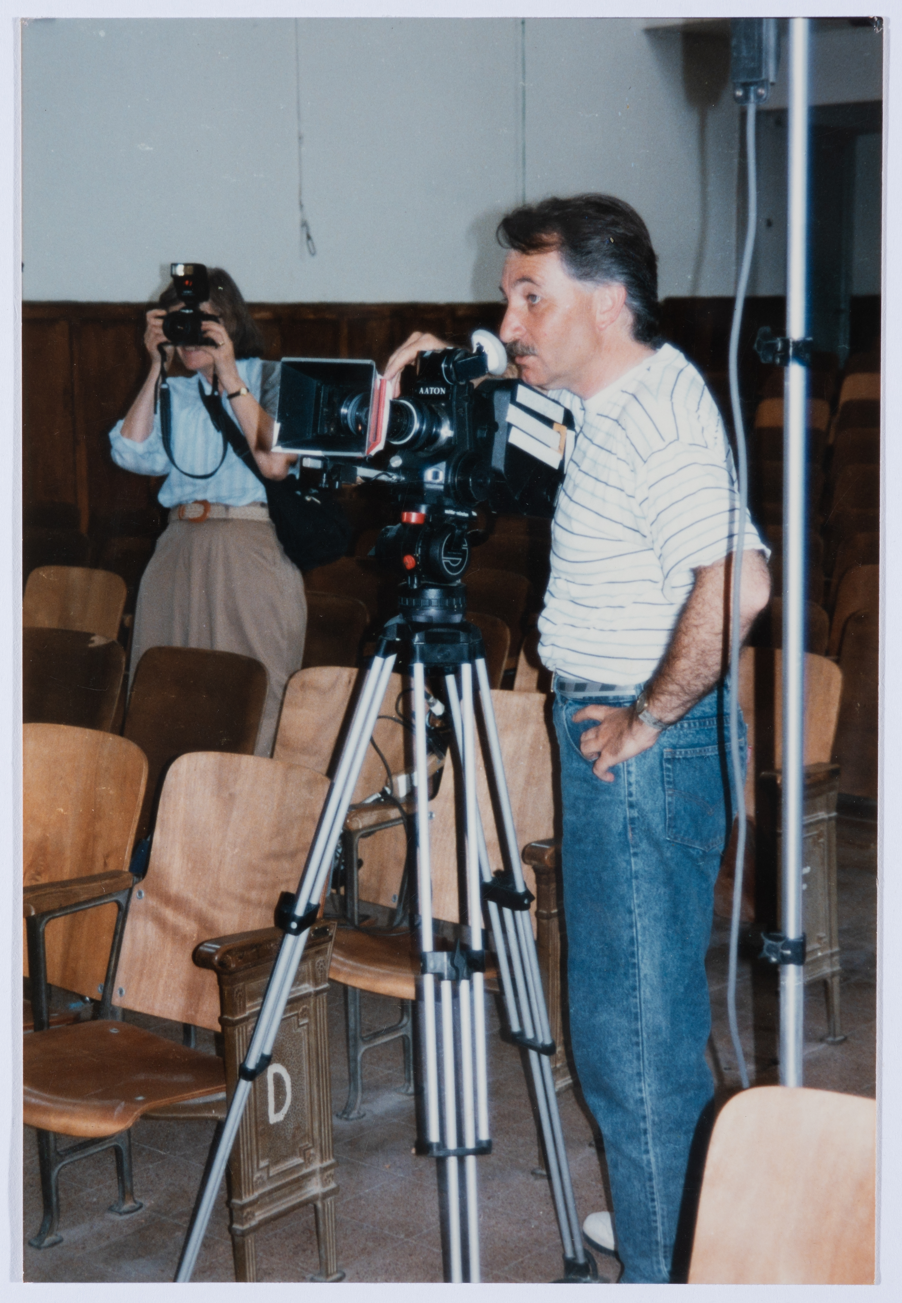 Taken in 1994, this colour photograph capture part of a workshop for the Palestinian Broadcasting Corporation (PBC) staff at the Palestinian National Theatre- al-Hakawati.