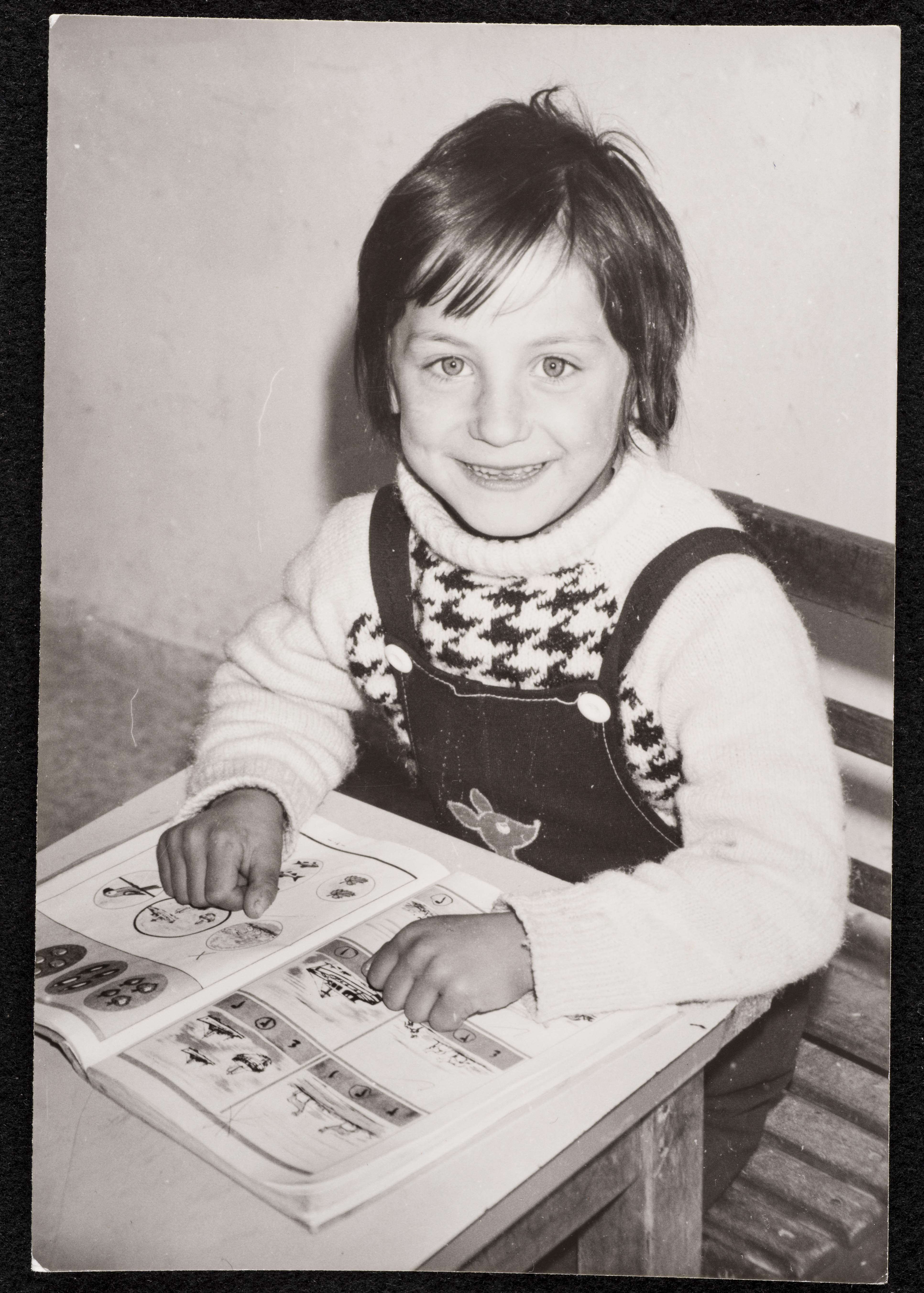 صورة شخصية غير ملونة لأحد طلاب روضة الزهور في القدس. تأسست روضة الزهور على يد إليزابيث حنا ناصر عام 1952م، كدار إيواء للفتيات المشردات. تطورت لاحقاً لتصبح روضة ومدرسة ابتدائية.