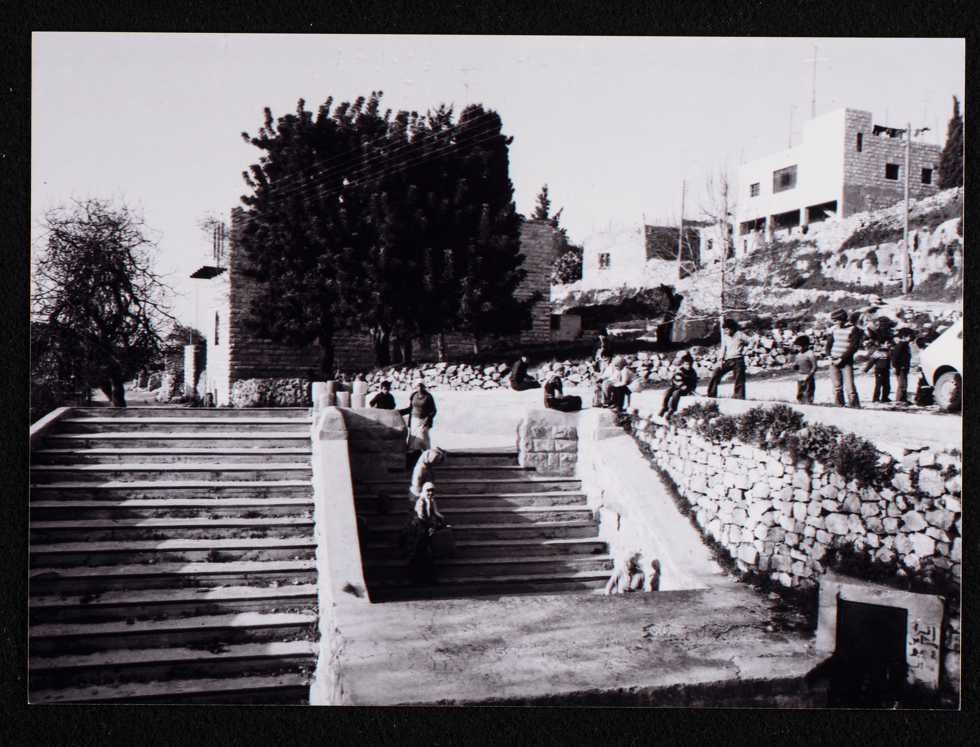 صورة أسود وأبيض، لنبع ماء في قرية بتير بمدينة بيت لحم.