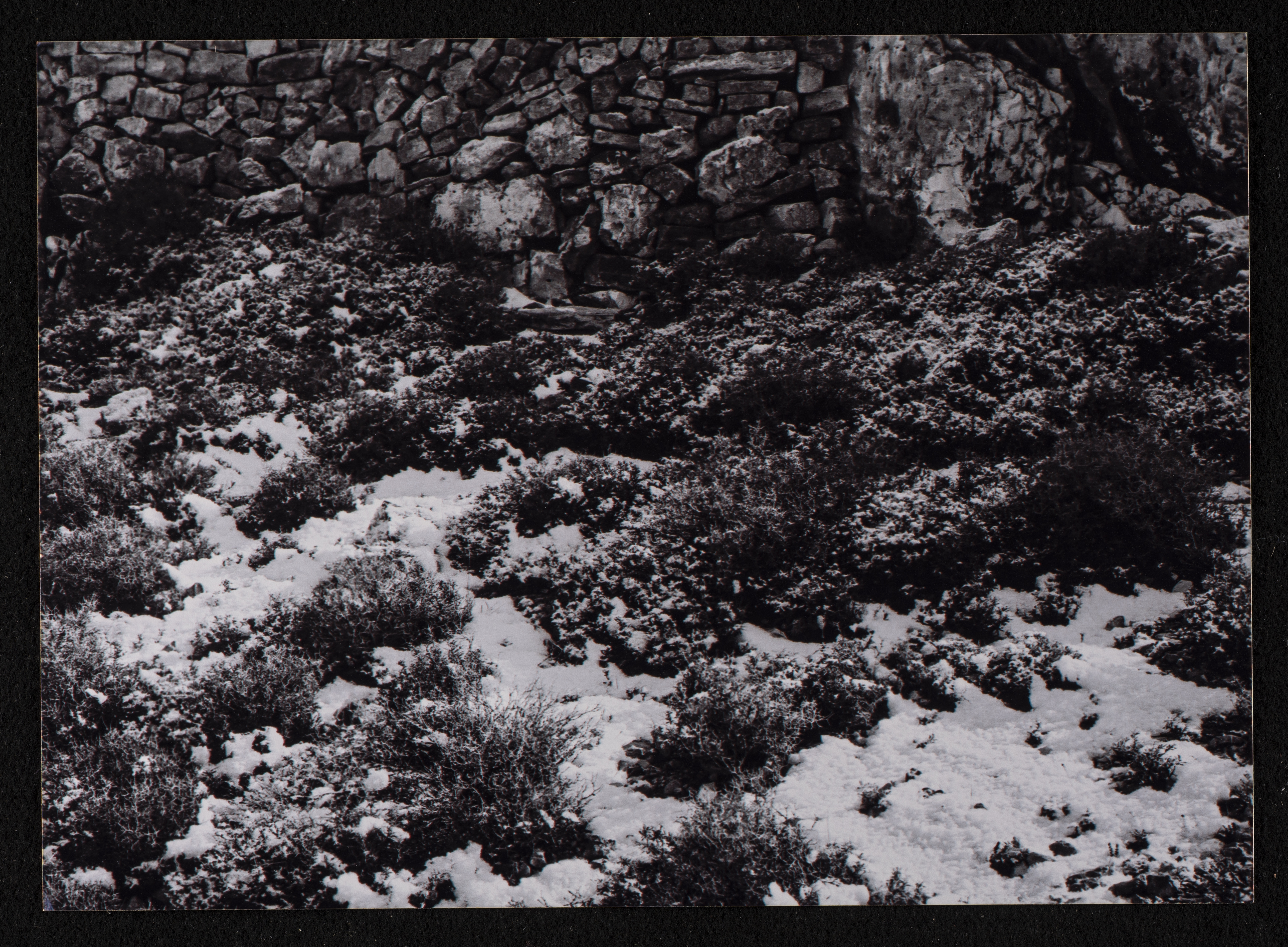 صورة توثق تراكم الثلوج على الاراضي الزراعية بين مدينة رام الله وبلدة بيرزيت.