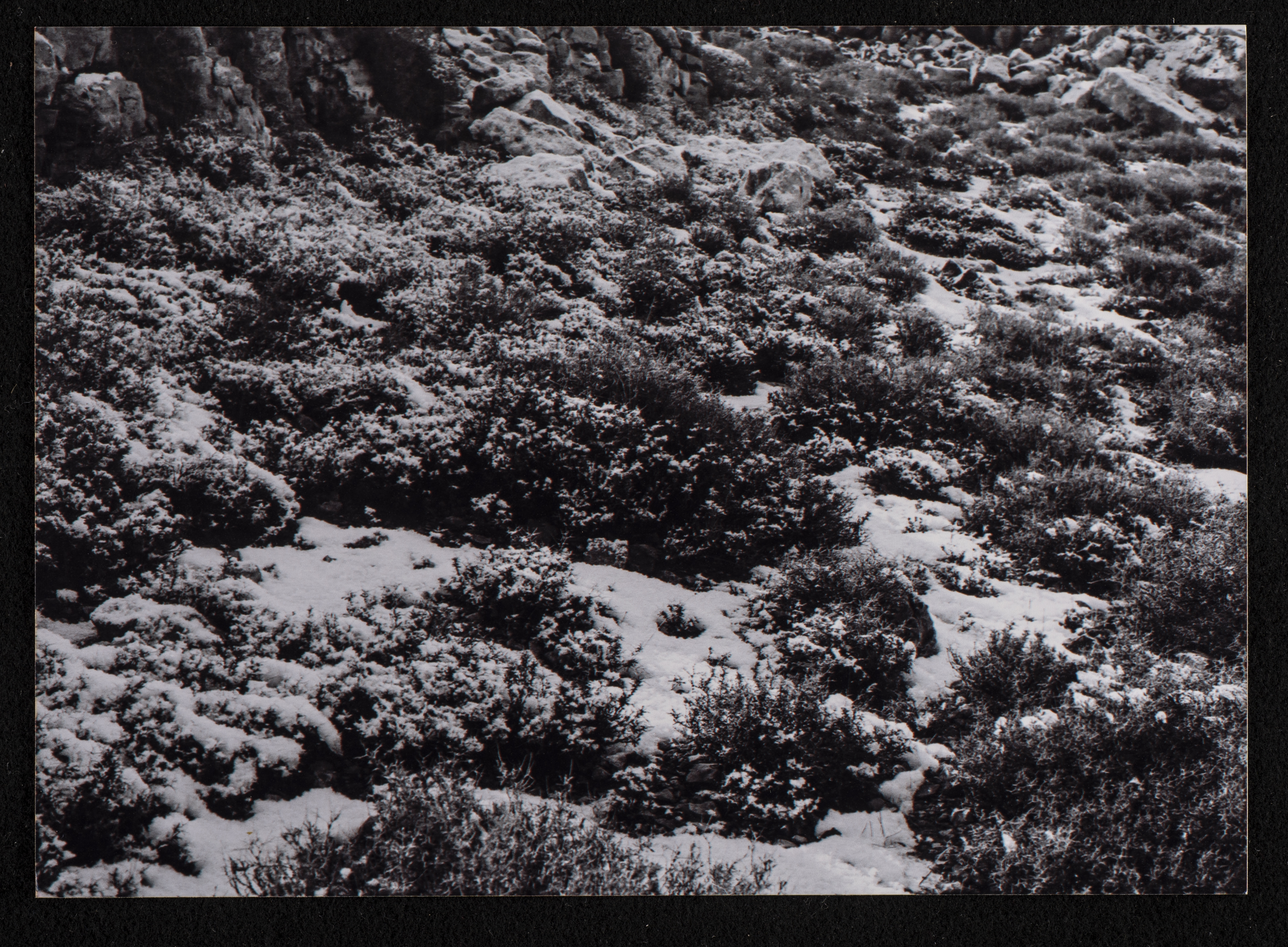 صورة توثق تراكم الثلوج على الاراضي الزراعية بين مدينة رام الله وبلدة بيرزيت.