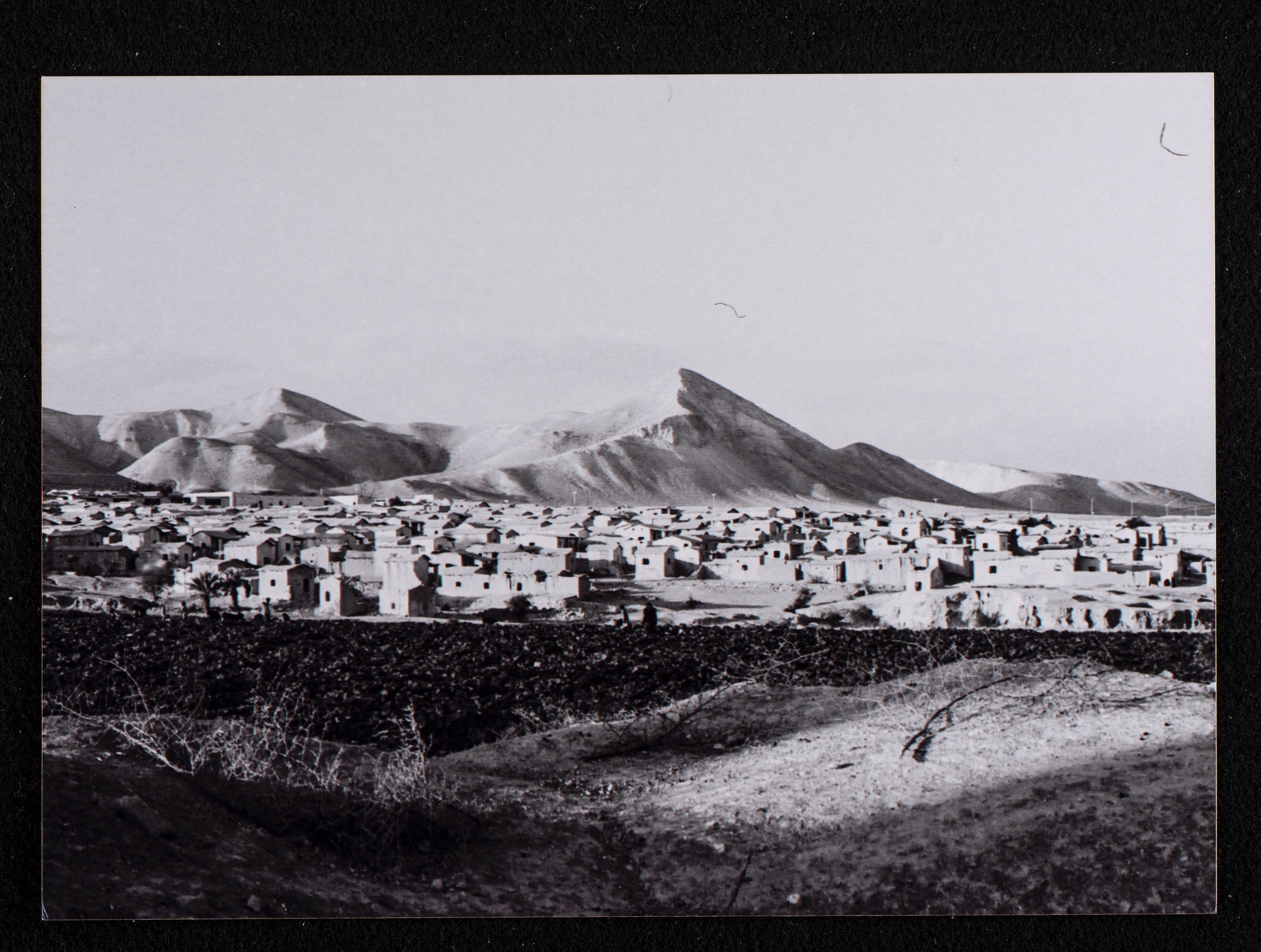 This black-and-white photograph captures a glimpse of the village of Dayr Ghassana.