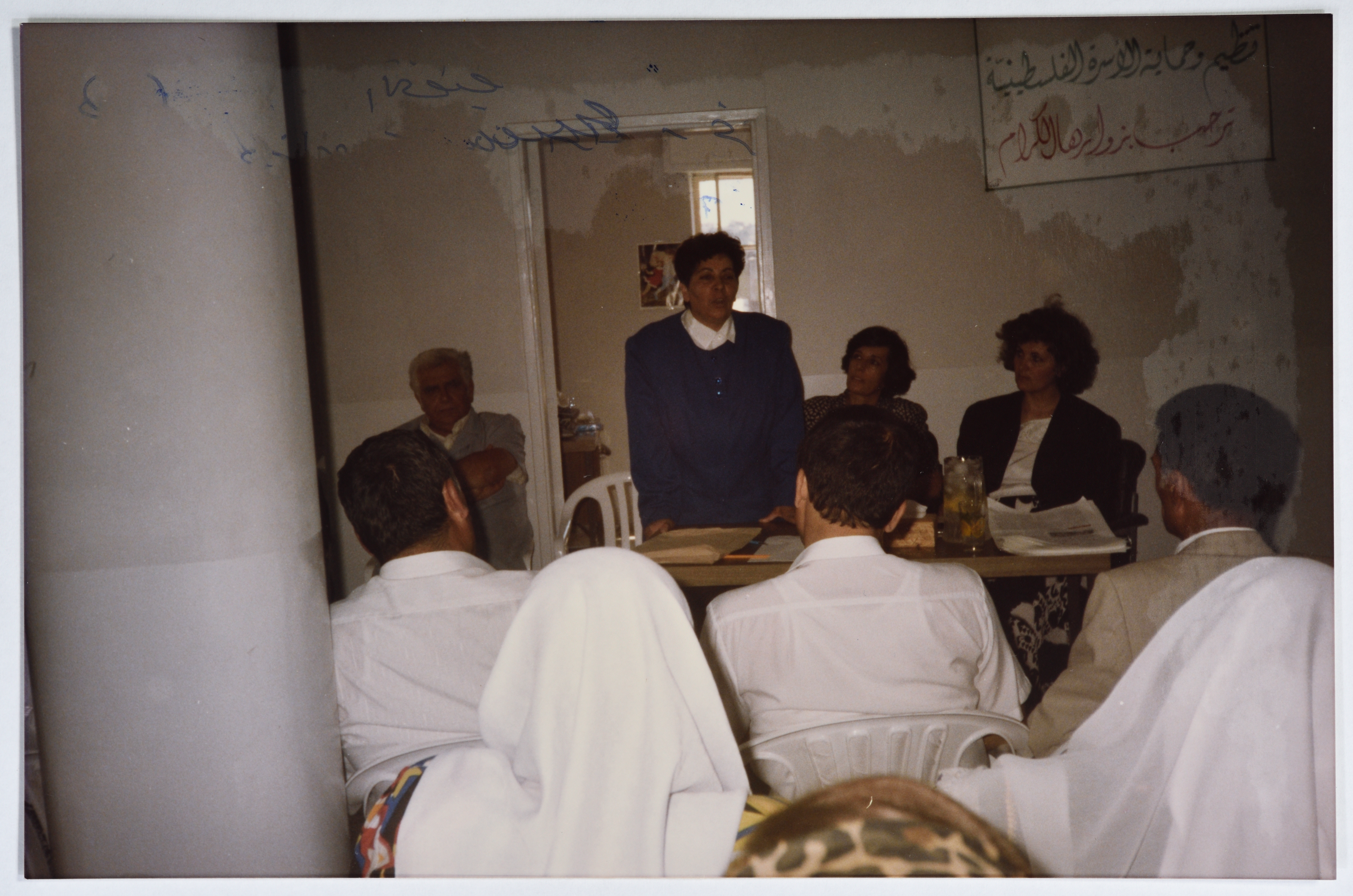 Taken in 1988, this photograph shows Zahira Kamal with Amal Khraisha at a political seminar organized by the Palestinian Family Planning and Protection Association in Gaza.