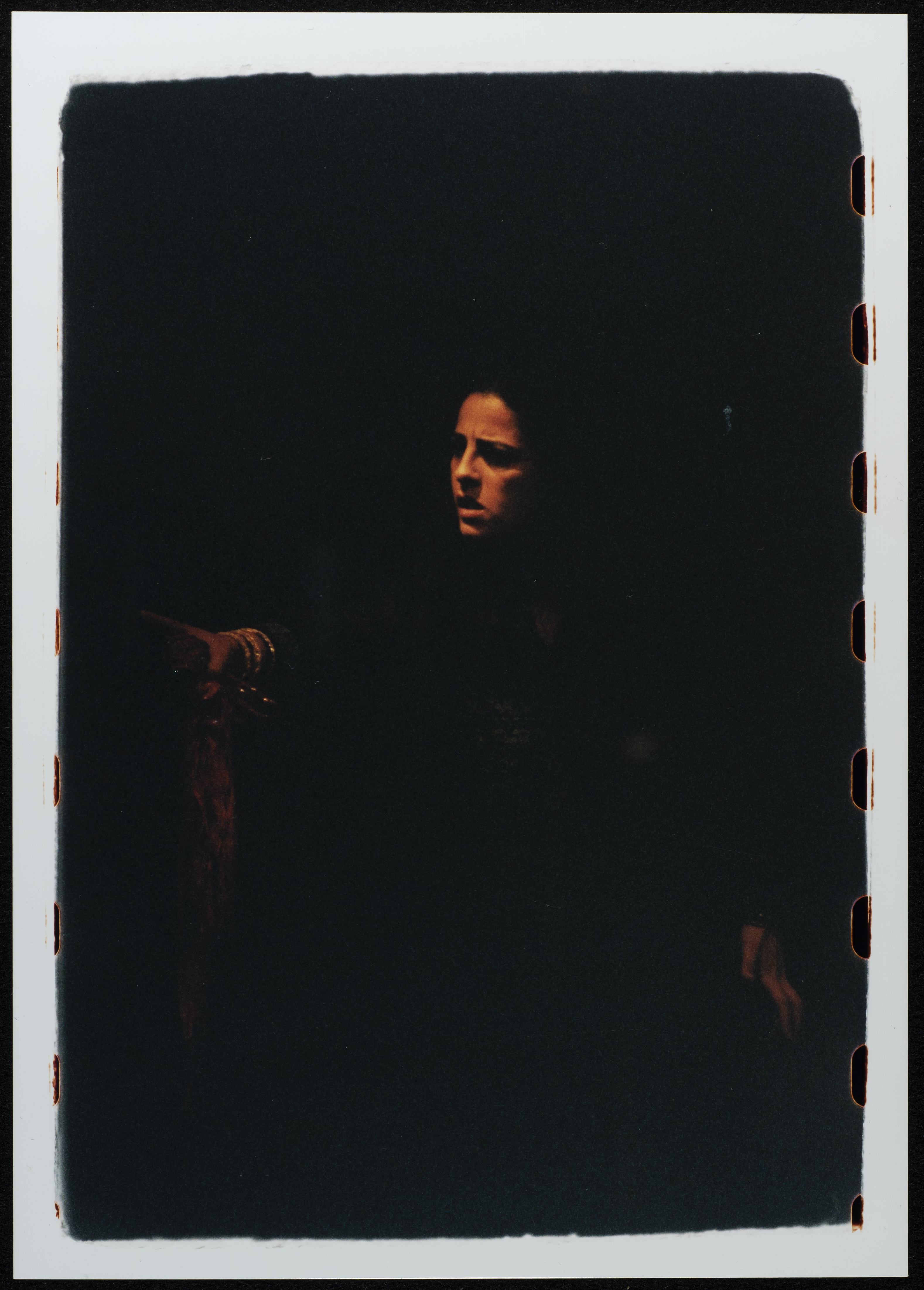 صورة ملونة من عرض لمسرحية المهاجر من إخراج محمد خميس وتأليف جورج ابراهيم. عرضت مسرحية المهاجر في القدس والجليل والأردن وسوريا وتونس. كما وحازت هذه المسرحية على جائزة أفضل اخراج وأفضل ملابس في مهرجان قرطاج بتونس. المسرحية من تمثيل: محمد البكري، مكرم خوري، محمود عوض، خالد المصو، وليد عبد السلام، جورج ابراهيم، سلوى نقارة، عرين عمري، حسام ابو عيشة، بسام زعمط.