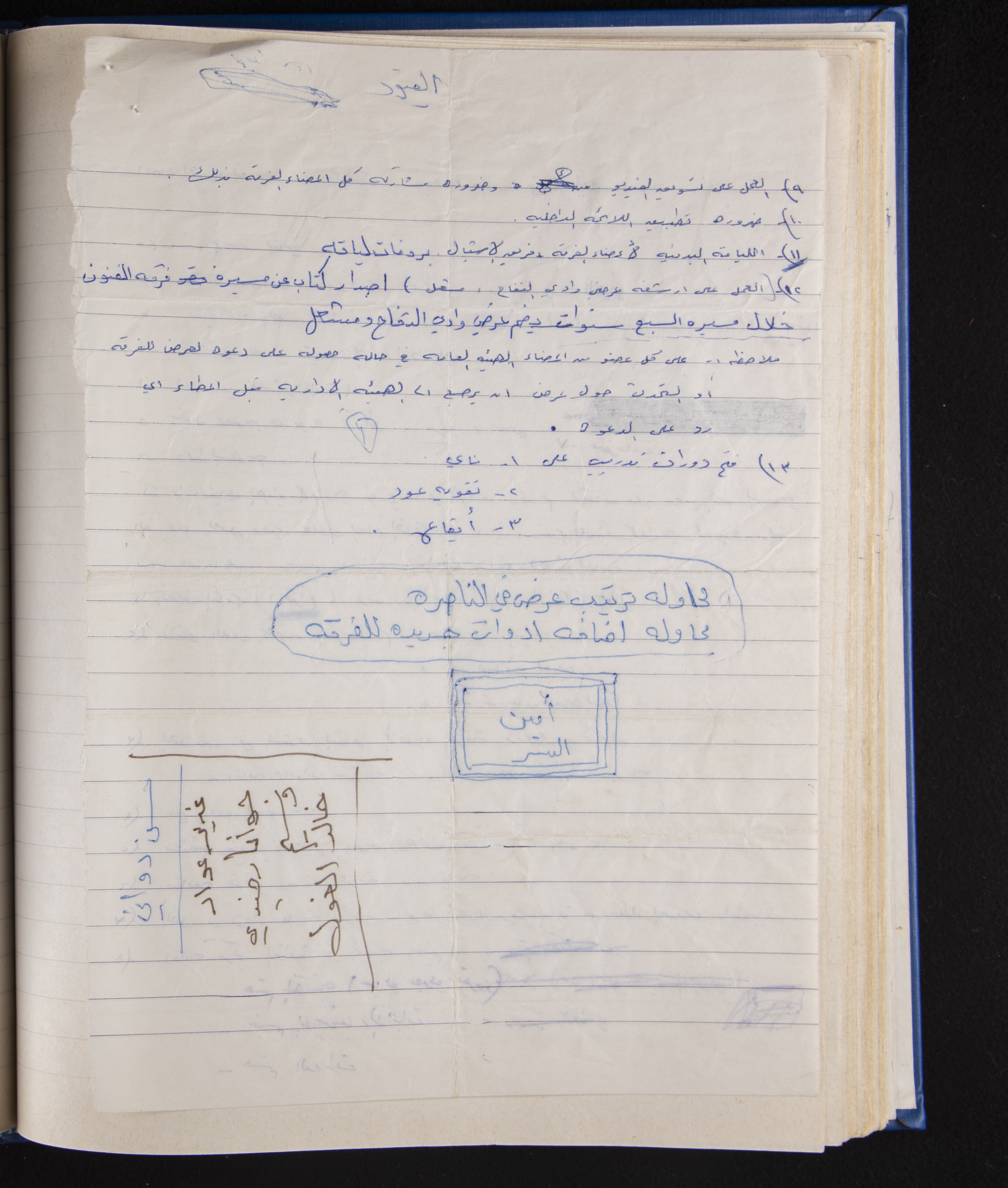 محضر اجتماع اللجنة الفنية لفرقة الفنون