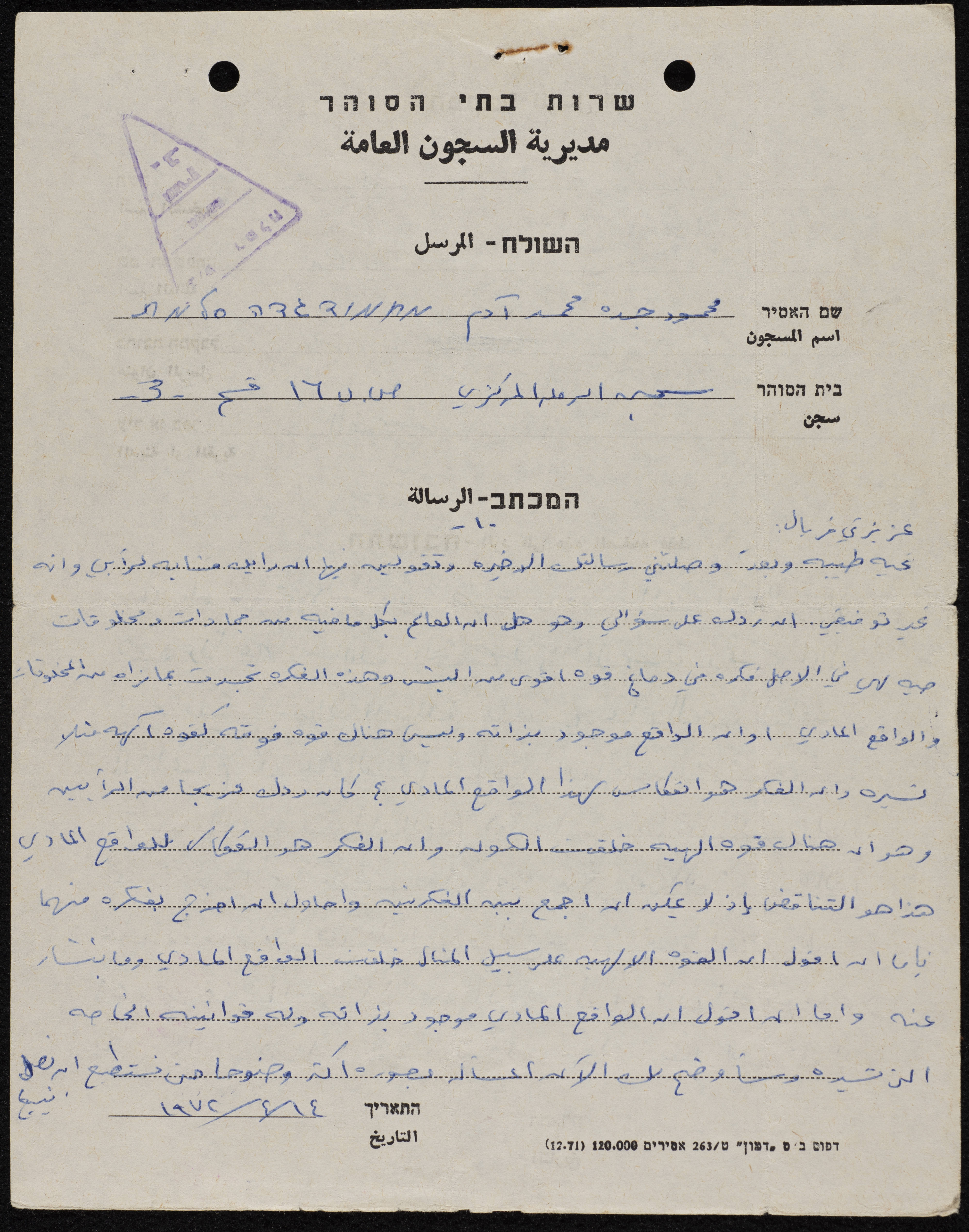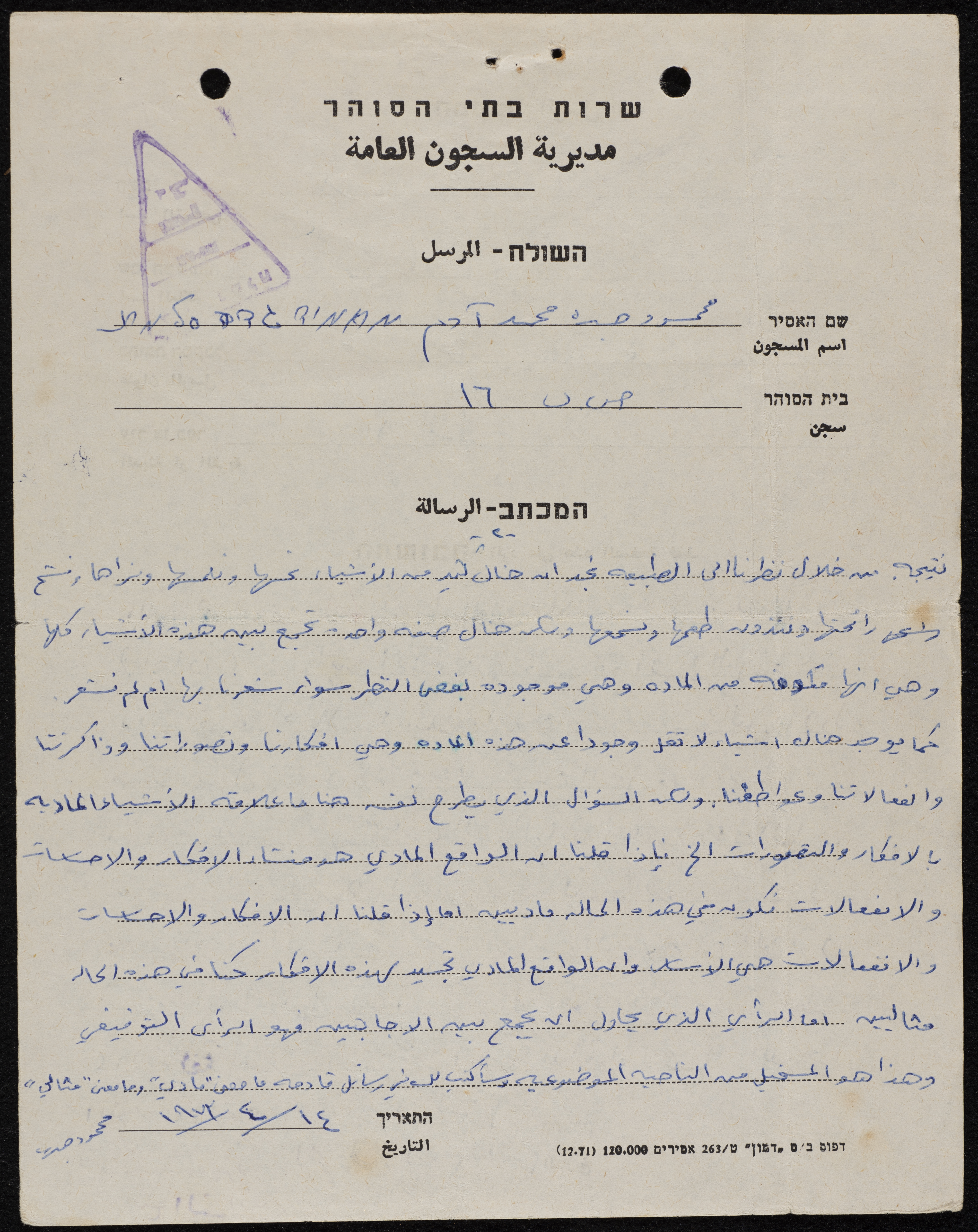 رسالة مؤرخة في 14 نيسان 1972، أرسلها محمود جدة الأسير في سجن الرملة المركزي إلى فريال مكارفي، وفيها تحدث عن فلسفة الواقع المادي.