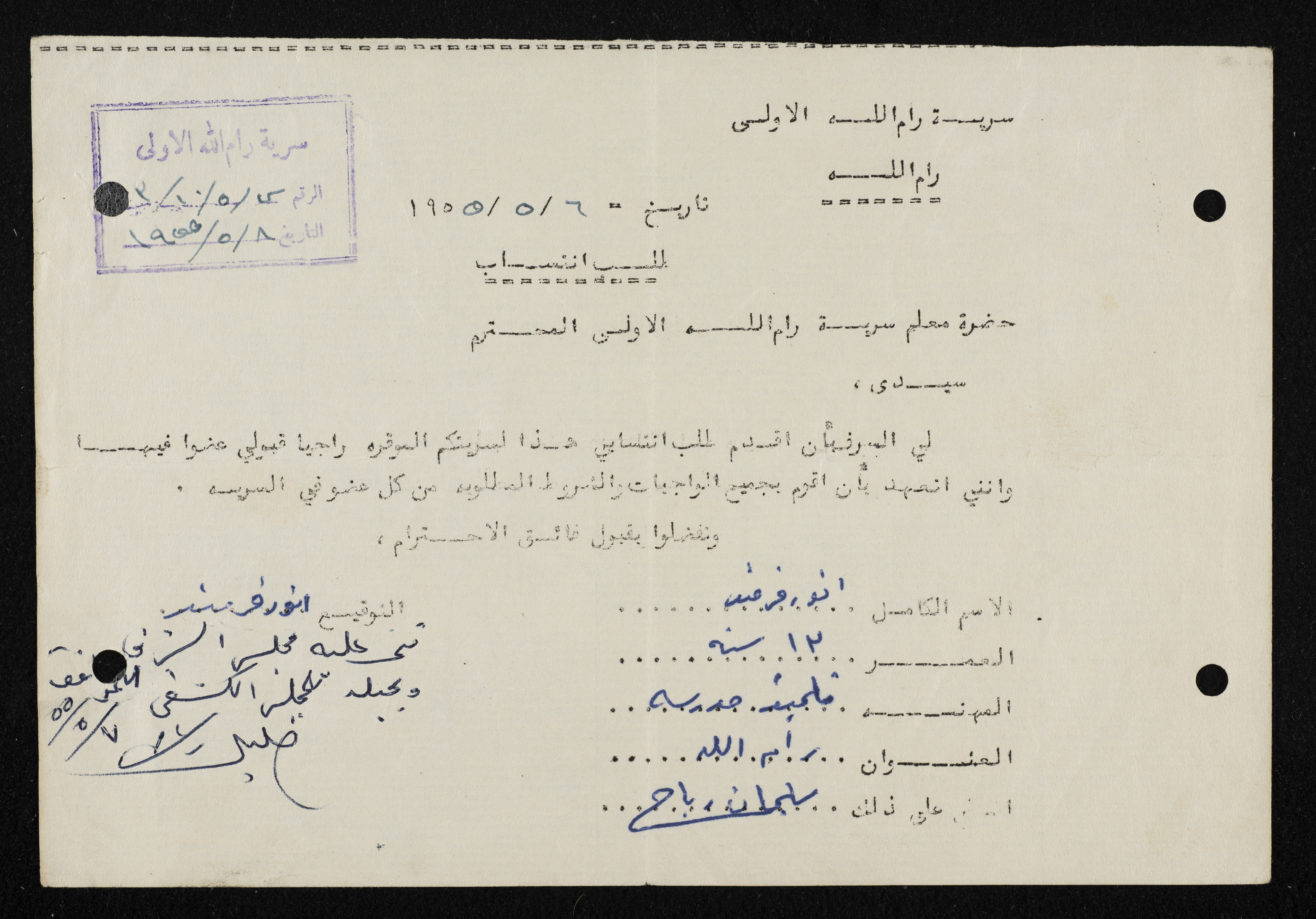 طلب انتساب الى سرية رام الله الاولى عام 1955
