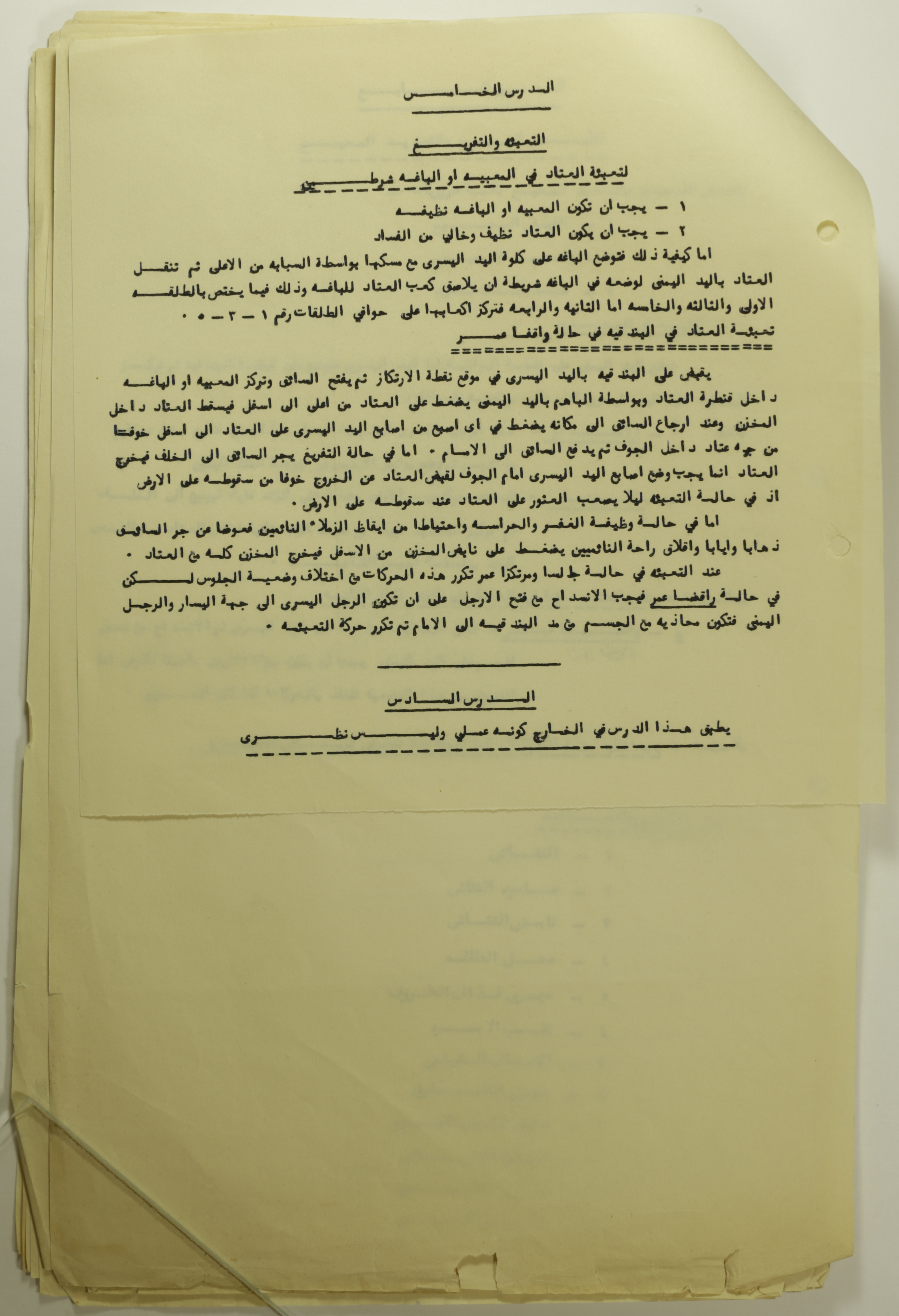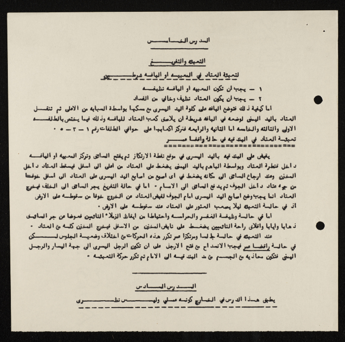 Printed in Arabic, this informative text distributed among the members of Sareyyet Ramallah is about loading and unloading rifles.