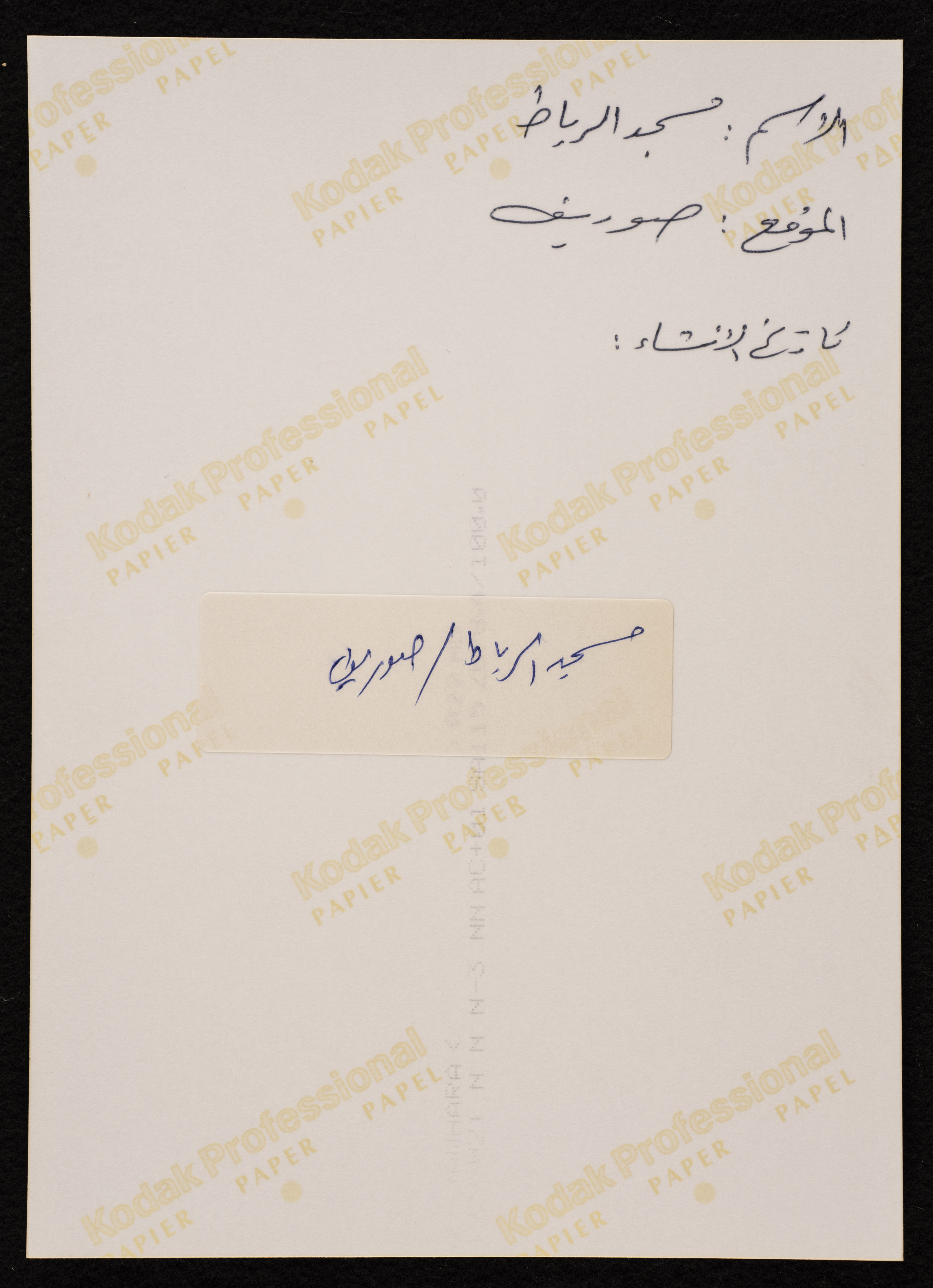 Found in Al Sanabel Center for the Study of the Palestinian Popular Heritage Collection, this is a colour photograph of Ar-Ribat Mosque in Surif northwest of Hebron. The mosque, which is managed by the Ministry of Awqaf and Religious Affairs, was built in 2005.