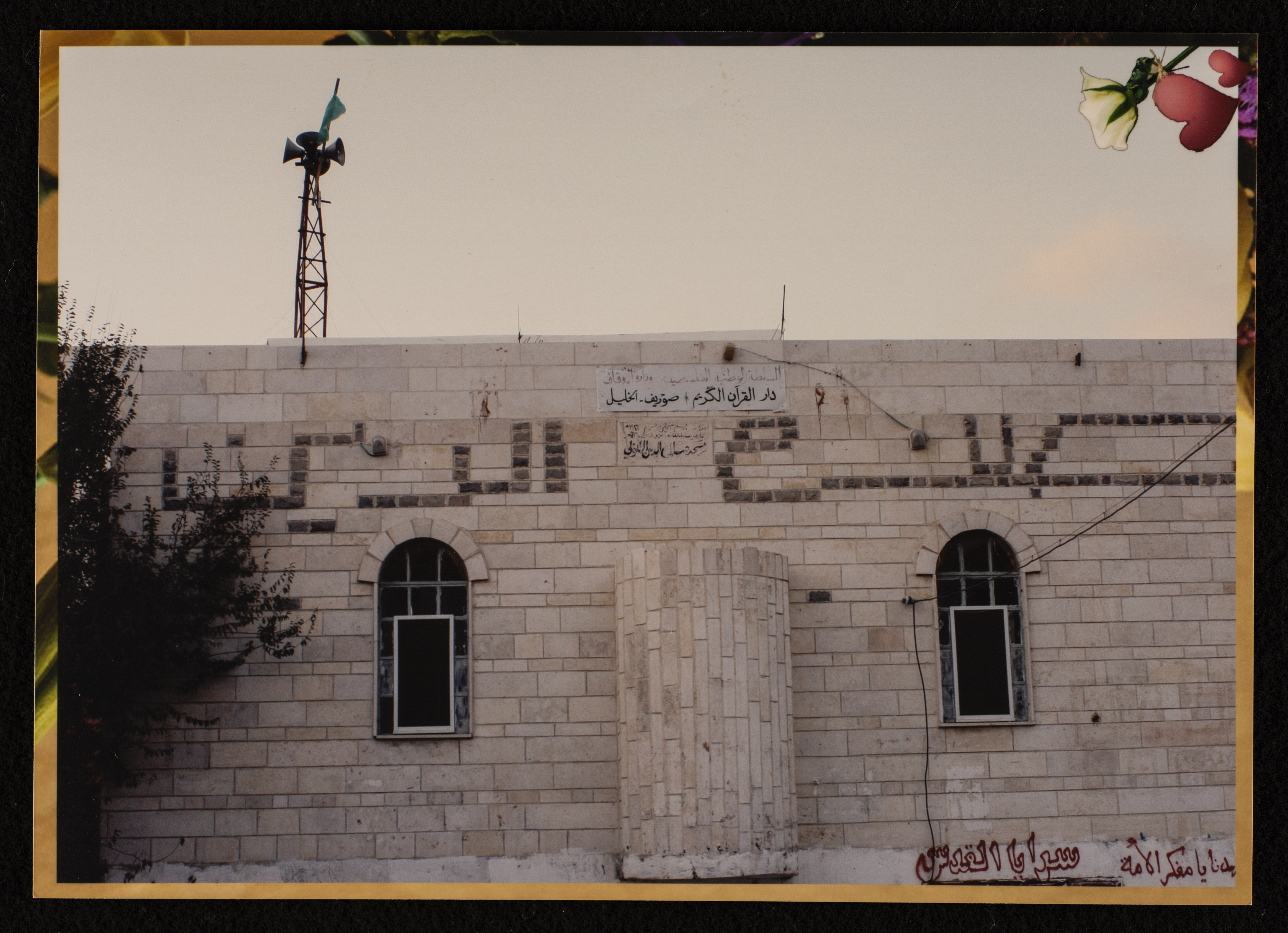 Found in Al Sanabel Center for the Study of the Palestinian Popular Heritage Collection, this is a colour photograph of Ṣalah ad-Din al-Ayyuby Mosque in Surif northwest of Hebron. The mosque, which is managed by the Ministry of Awqaf and Religious Affairs, is one of the town's oldest mosques.