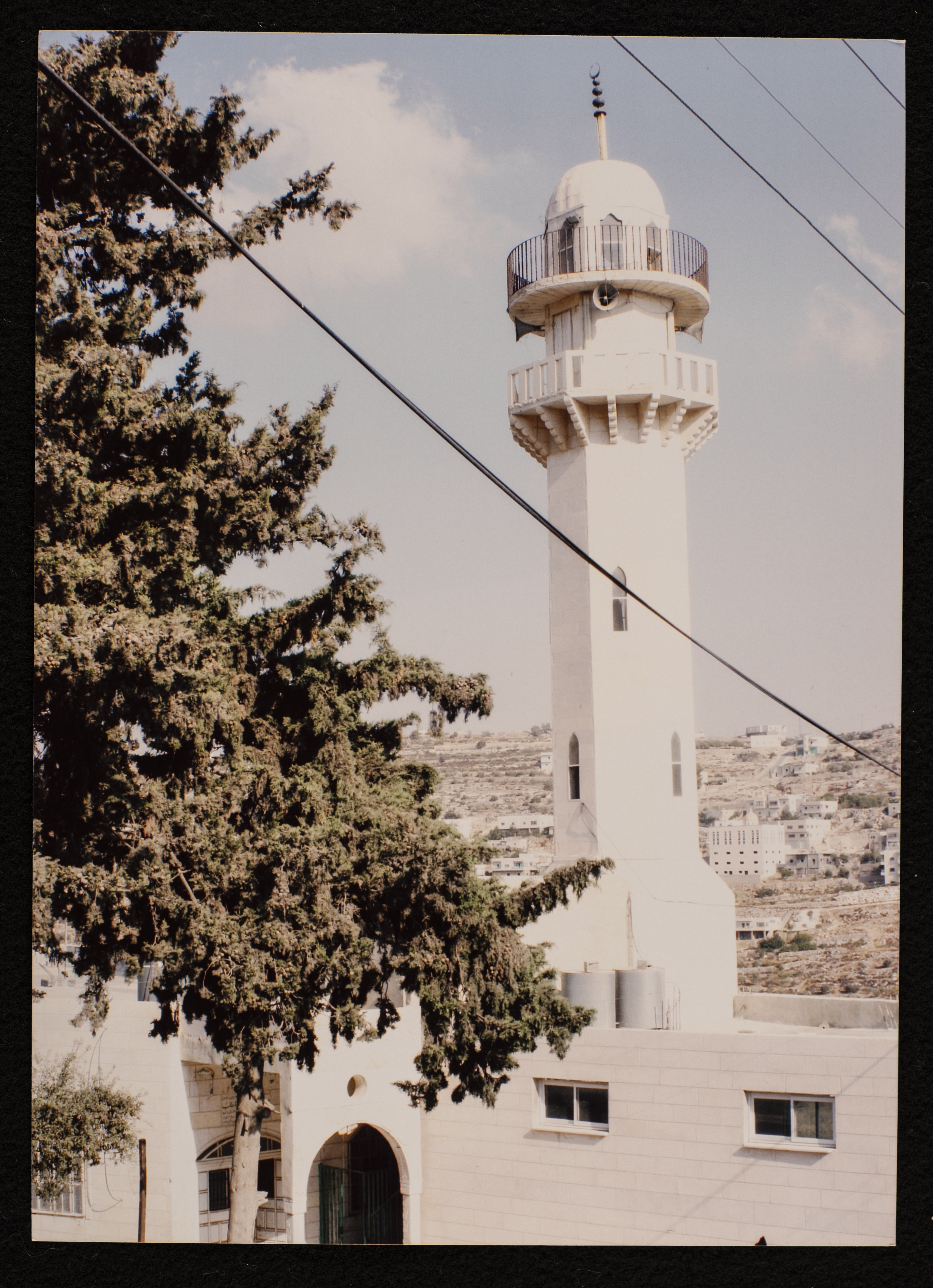 Found in Al Sanabel Center for the Study of the Palestinian Popular Heritage Collection, this is a colour photograph of Hamza bin Abdul-Muttaleb Mosque which was built in 1985 in Sa'ir northeast of Hebron.