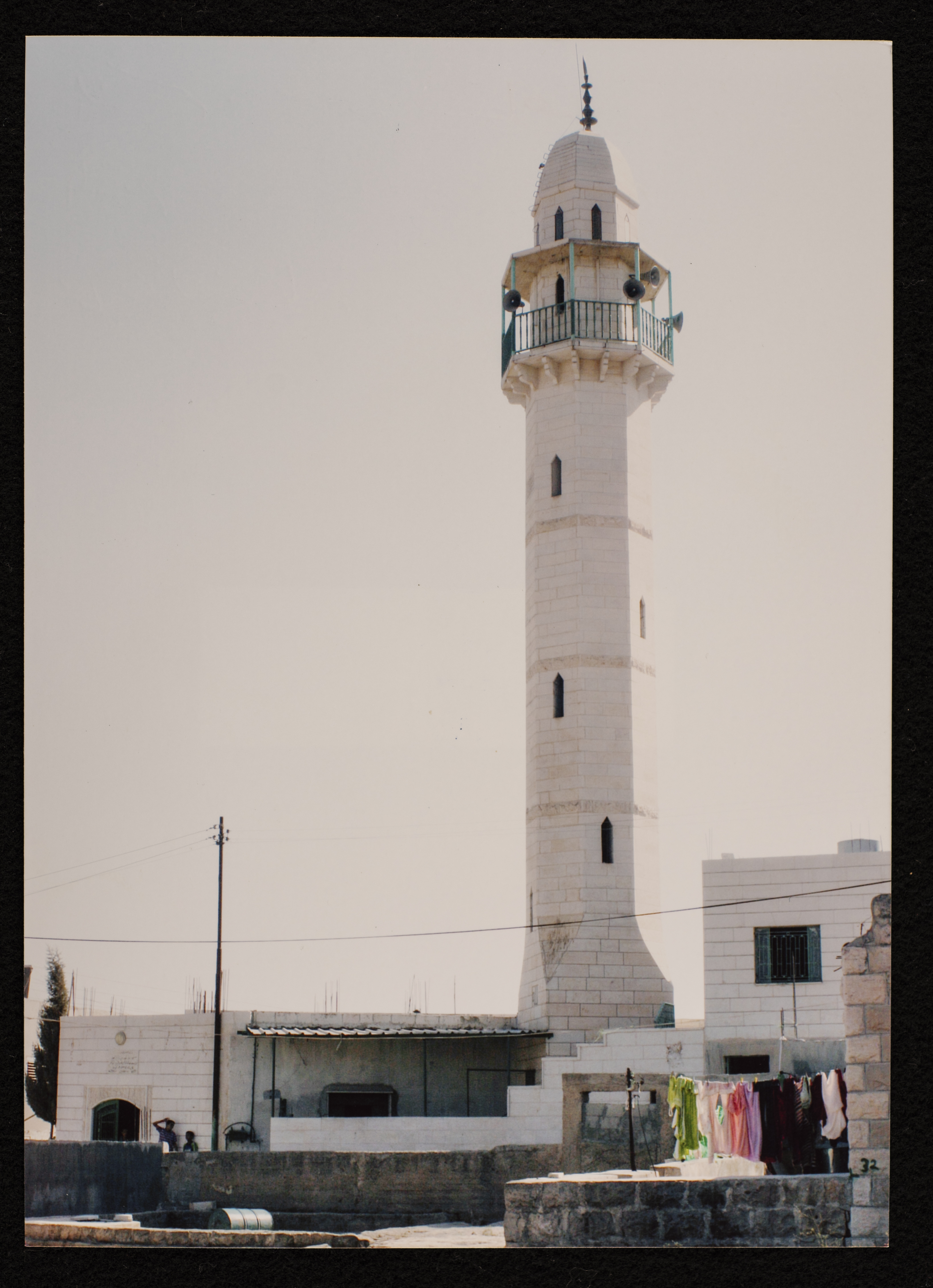 Found in Al Sanabel Center for the Study of the Palestinian Popular Heritage Collection, this is a colour photograph of Bayt 'Anun Mosque in Bayt 'Anun village which is under Sa'ir's Municipal Council in the Hebron Governorate. The mosque, which is managed by the Ministry of Awqaf and Religious Affairs, was built in 1989.