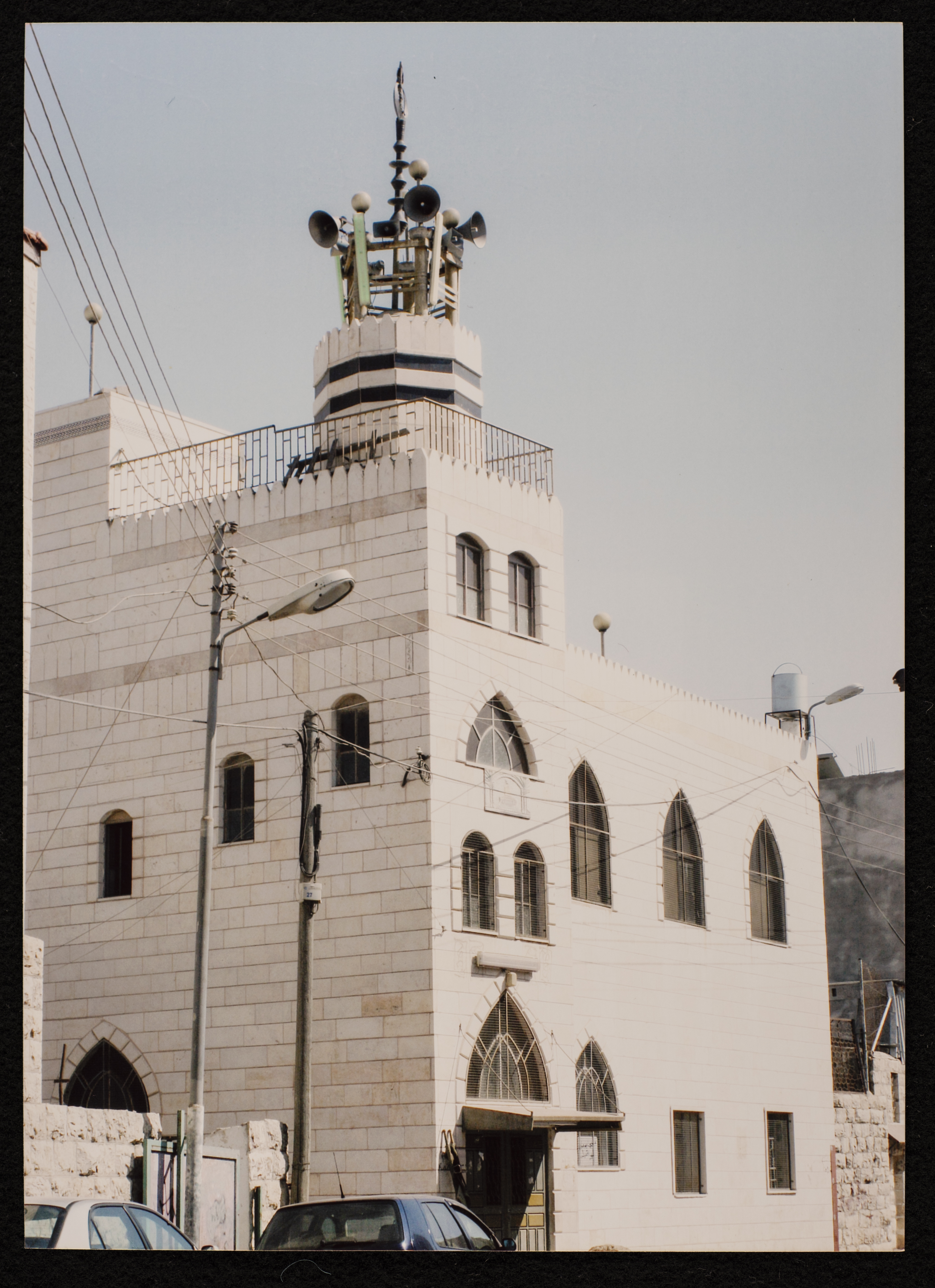 Found in Al Sanabel Center for the Study of the Palestinian Popular Heritage Collection, this is a colour photograph of Ẓahr Qtait Mosque in Halhul's Ẓahr Qtait area north of Hebron. The mosque, which is managed by the Ministry of Awqaf and Religious Affairs, was built in 1992.