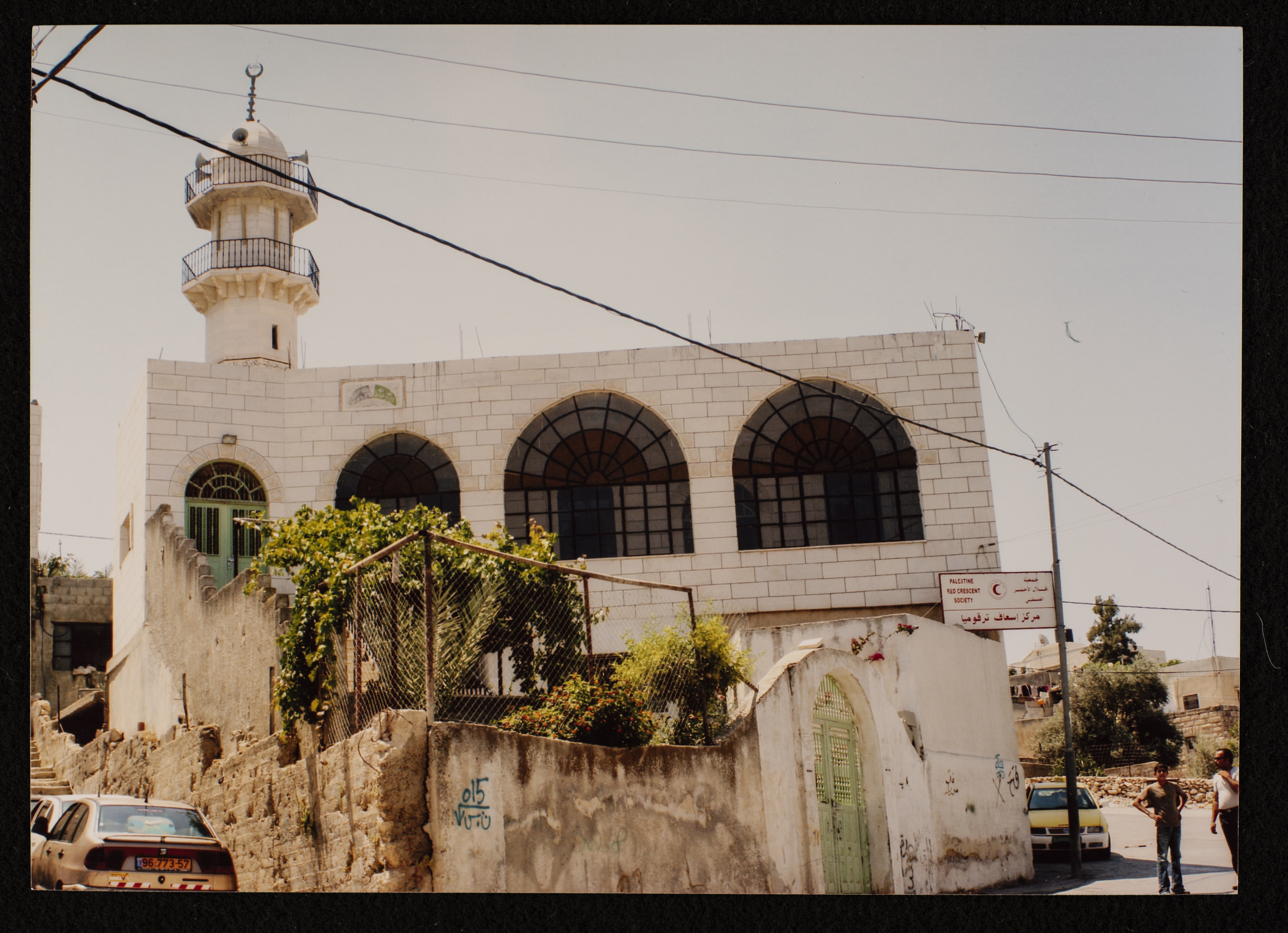 Found in Al Sanabel Center for the Study of the Palestinian Popular Heritage Collection, this is a colour photograph of al-Umary Mosque in Tarqumiyah northwest of Hebron. The mosque, which is managed by the Ministry of Awqaf and Religious Affairs, was built in 1998.