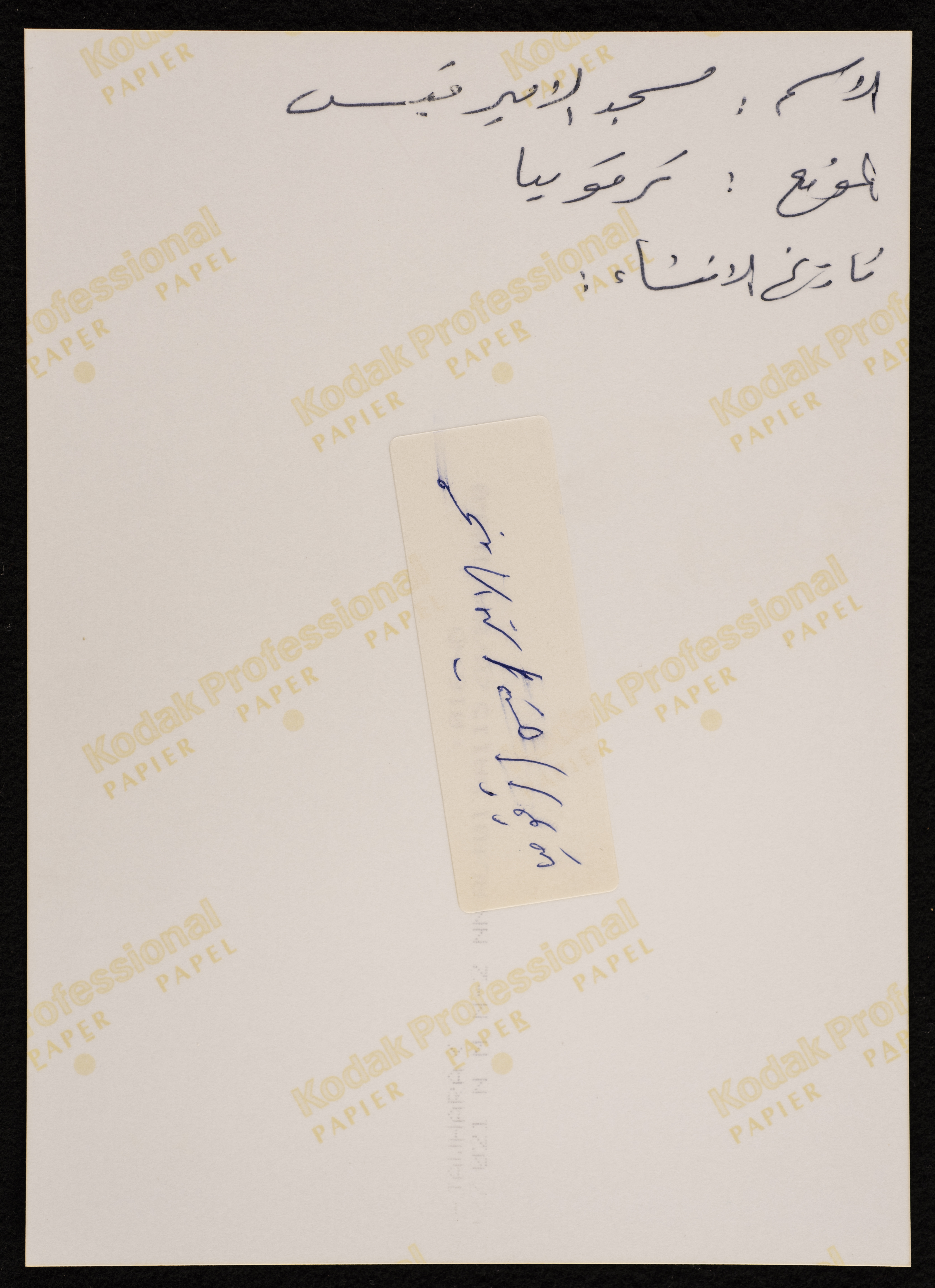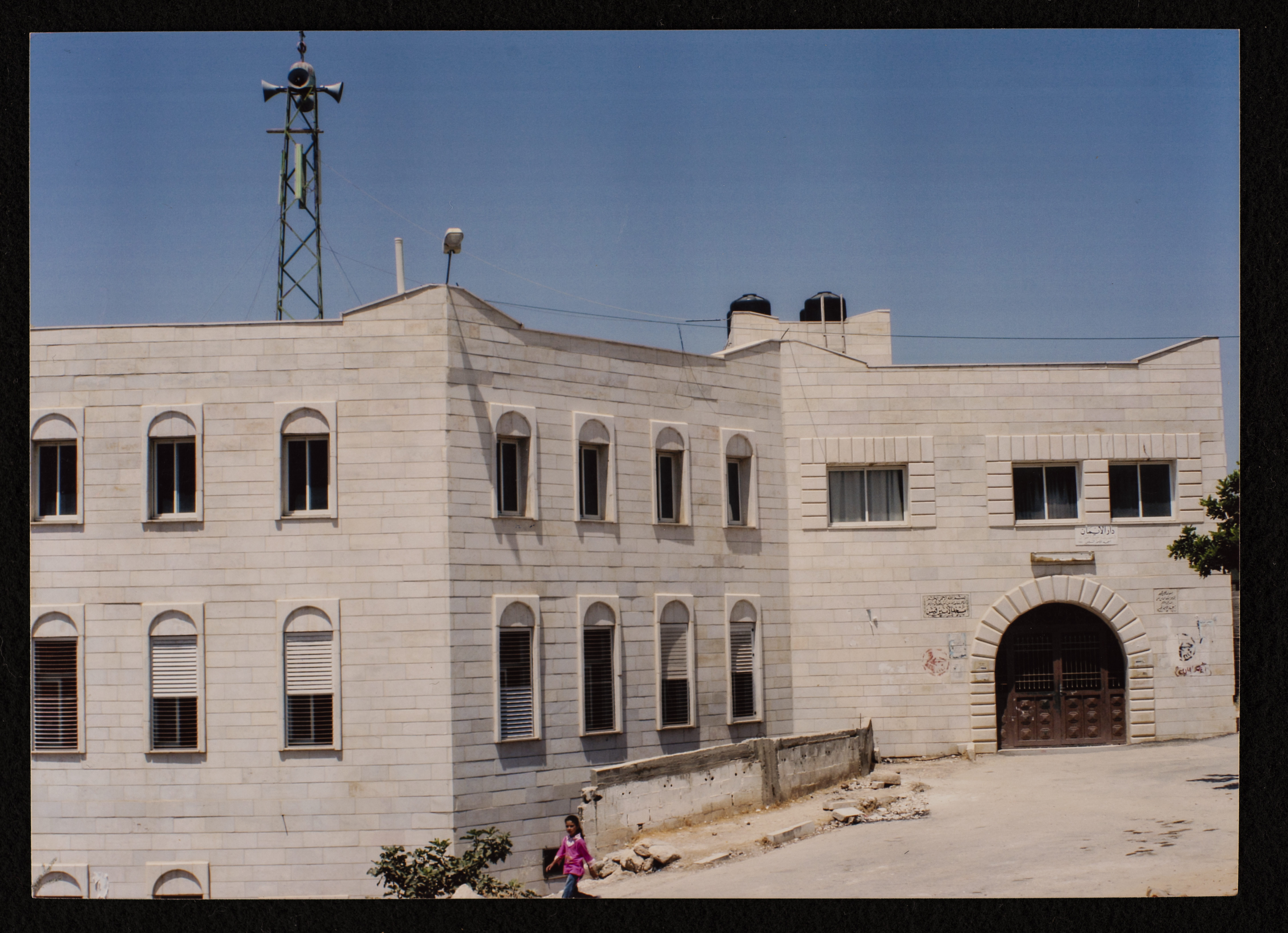 Found in Al Sanabel Center for the Study of the Palestinian Popular Heritage Collection, this is a colour photograph of Amir Qays Mosque in Tarqumiyah northwest of Hebron. The mosque, which is managed by the Ministry of Awqaf and Religious Affairs, was built in 2007.