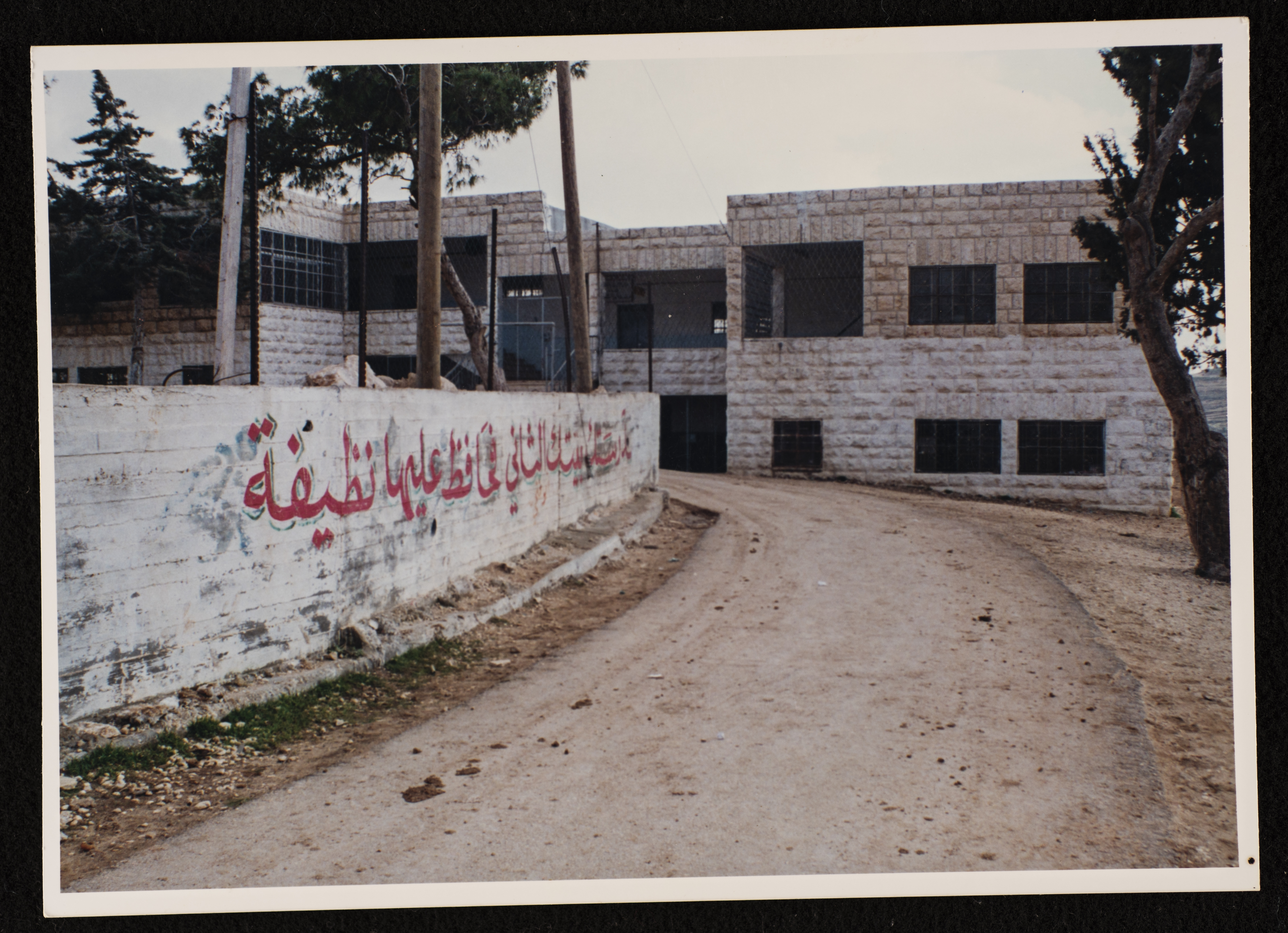 Found in Al Sanabel Center for the Study of the Palestinian Popular Heritage Collection, this is a colour photograph of Ash-Shuyukh Secondary Boys' School in Ash-Shuyukh town northeast of Hebron.
