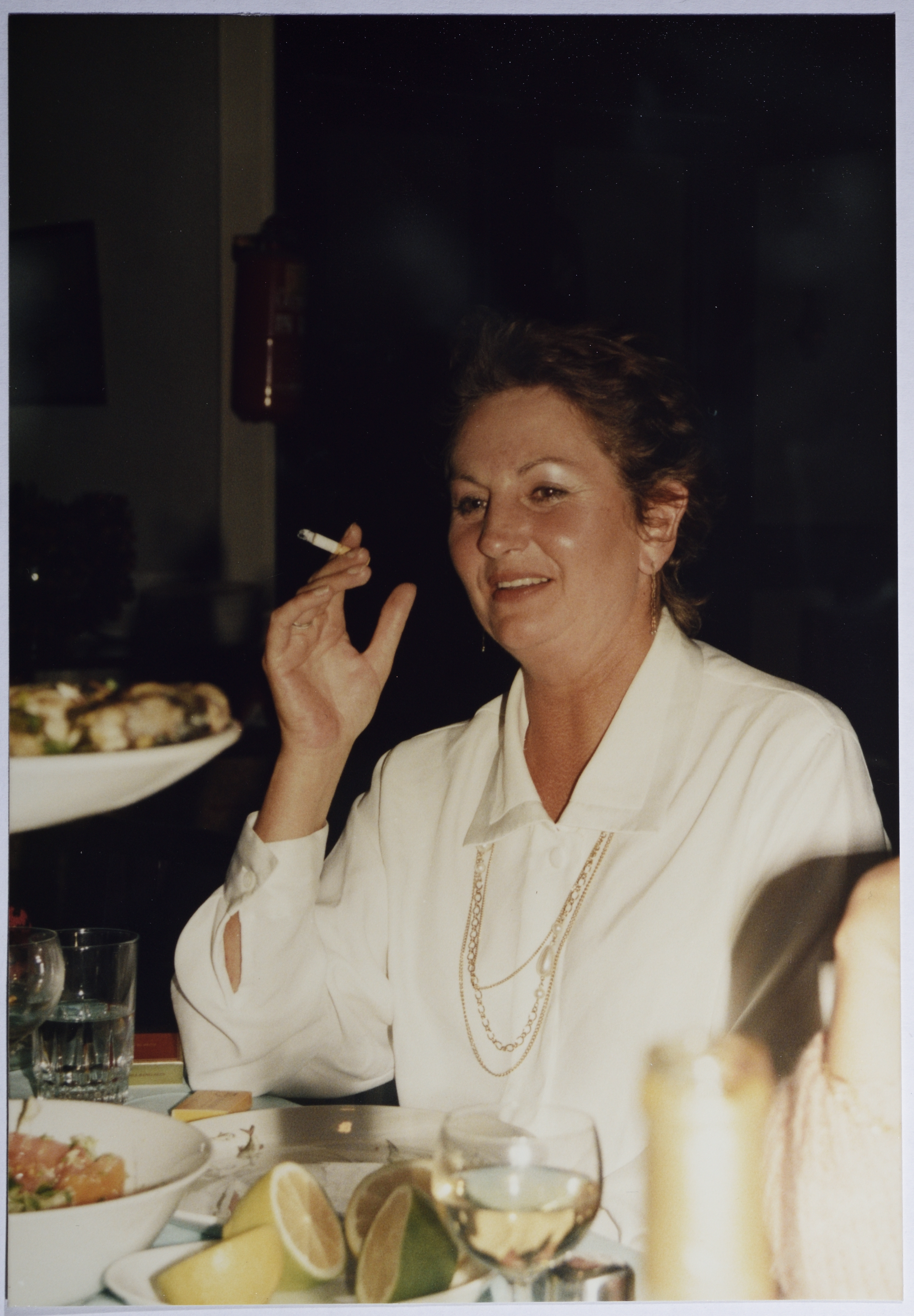 صورة ملونة لأحد الضيوف خلال عشاء مع الفنان المصري محمد منير خلال زيارته لجرحى الحرب على لبنان خلال فترة علاجهم في قبرص.