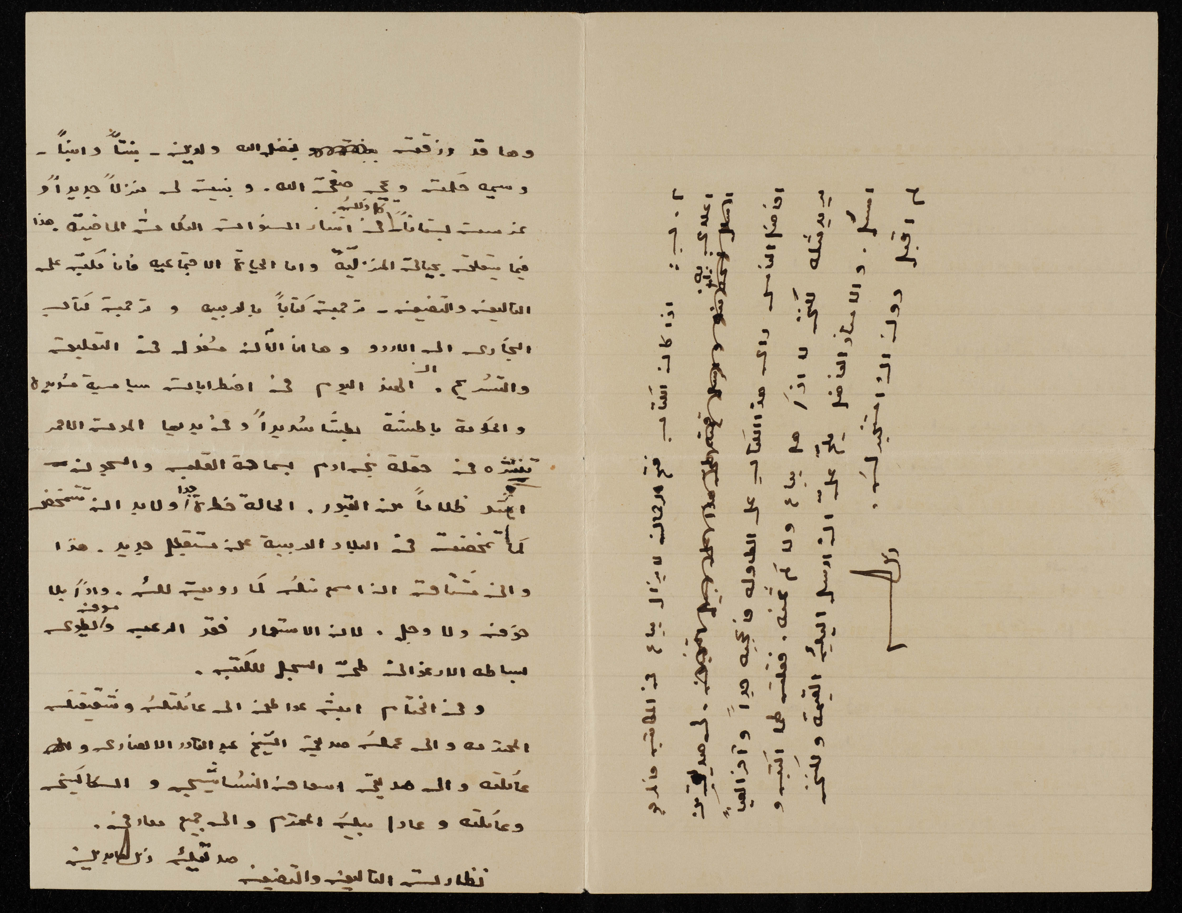 .وثيقة مكتوبة باللغة العربية، تتضمن رسالة شخصية الى موسى العلمي، وجدت في مجموعة المشروع الانشائي العربي