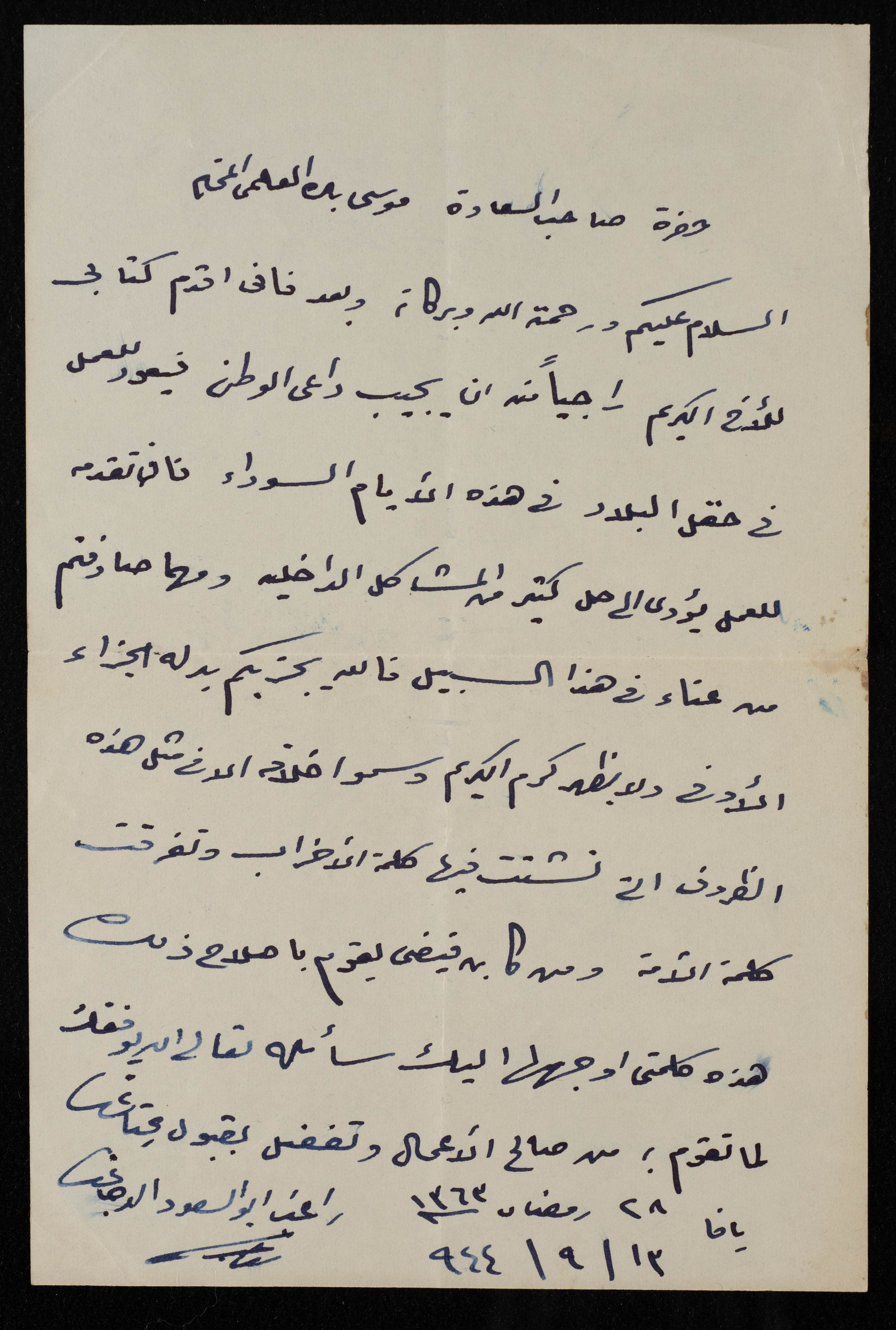 رسالة وصلت موسى العلمي عام 1944