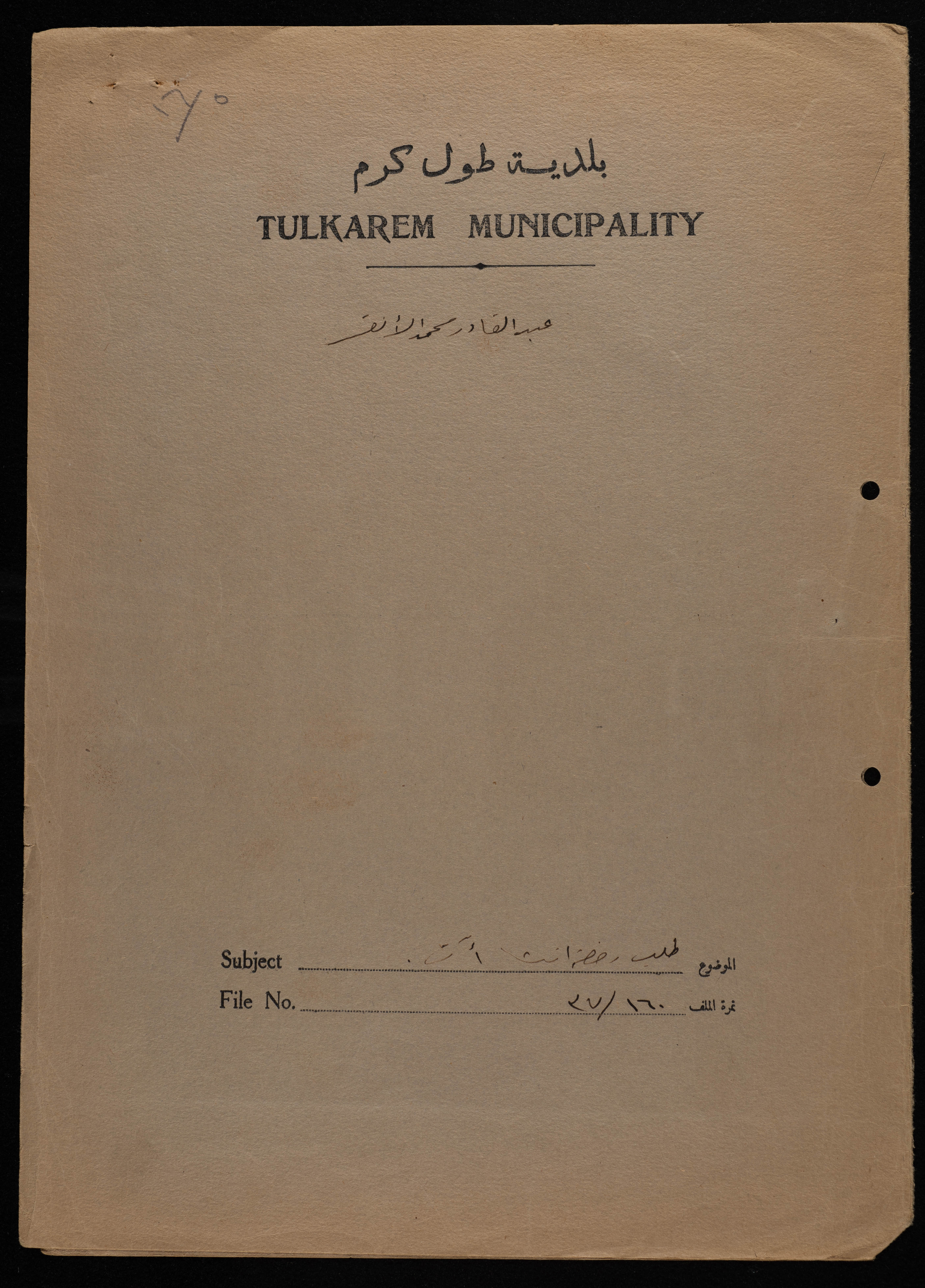 Ozrail, Samar. "The Municipality of Tulkarm Collection". Archival Inventory. 20 January-10 February 2019. The Palestinian Museum Digital Archive.