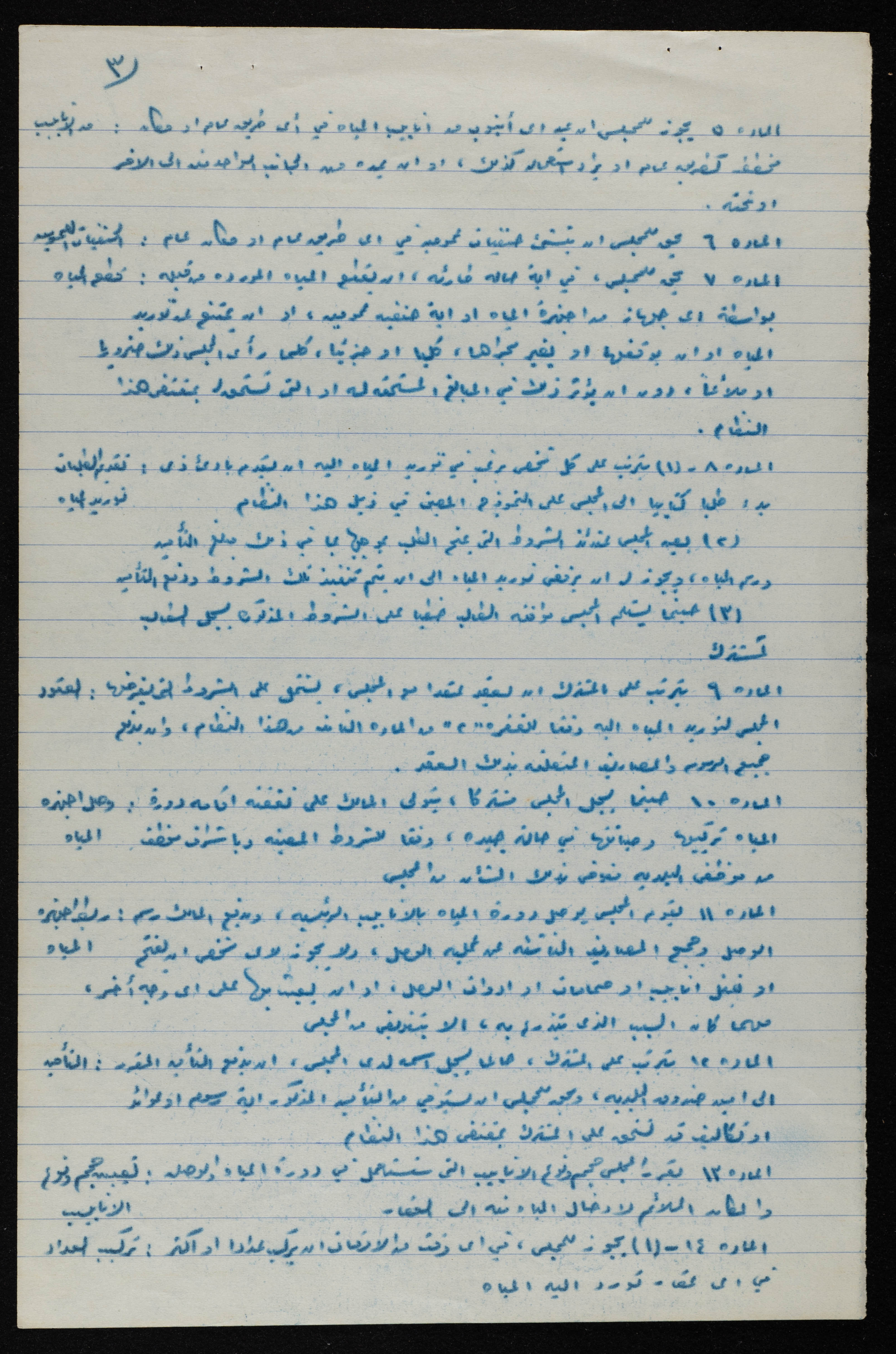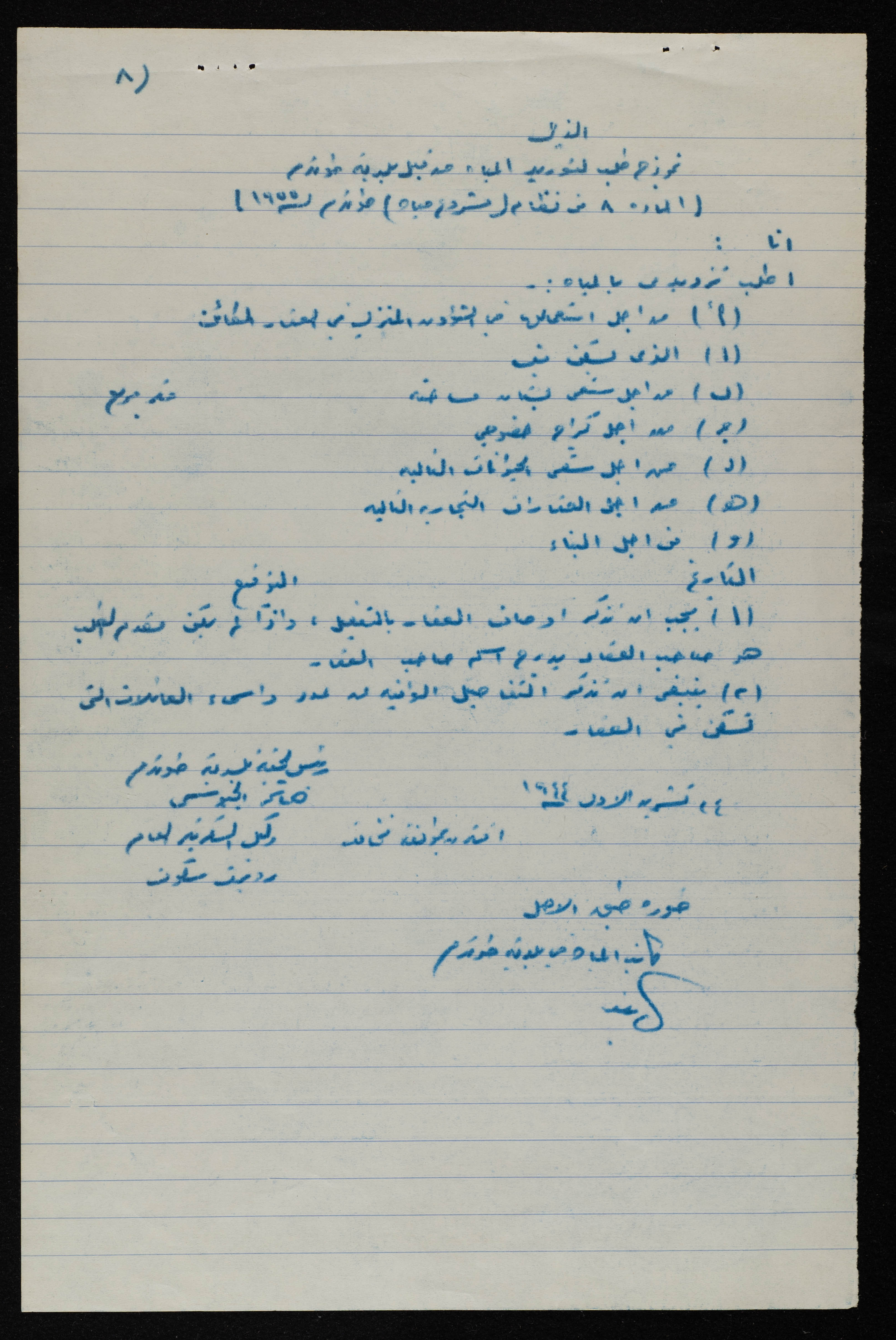 وثيقة مكتوبة باللغة العربية، تتضمن نموذج طلب لتوريد المياه من قبل بلدية طولكرم لعام 1955